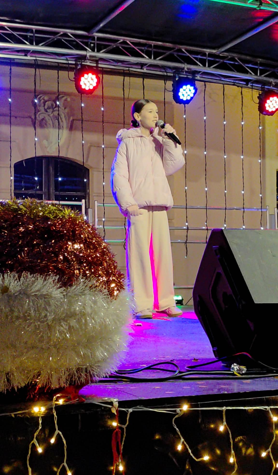 Tego wieczoru uczennica - Faustyna Wiśniewska stanęła na scenie, by wykonać kolędy:
