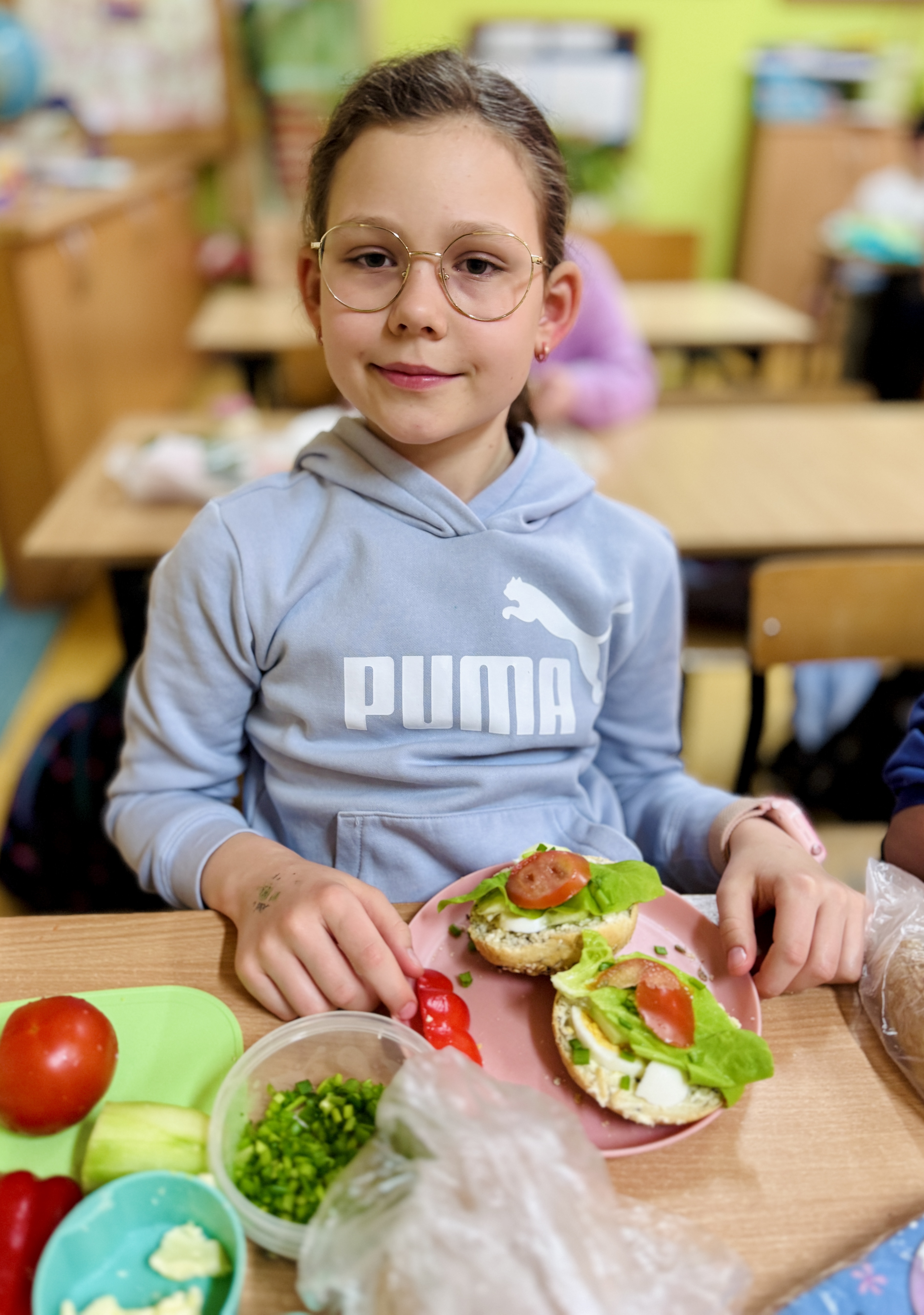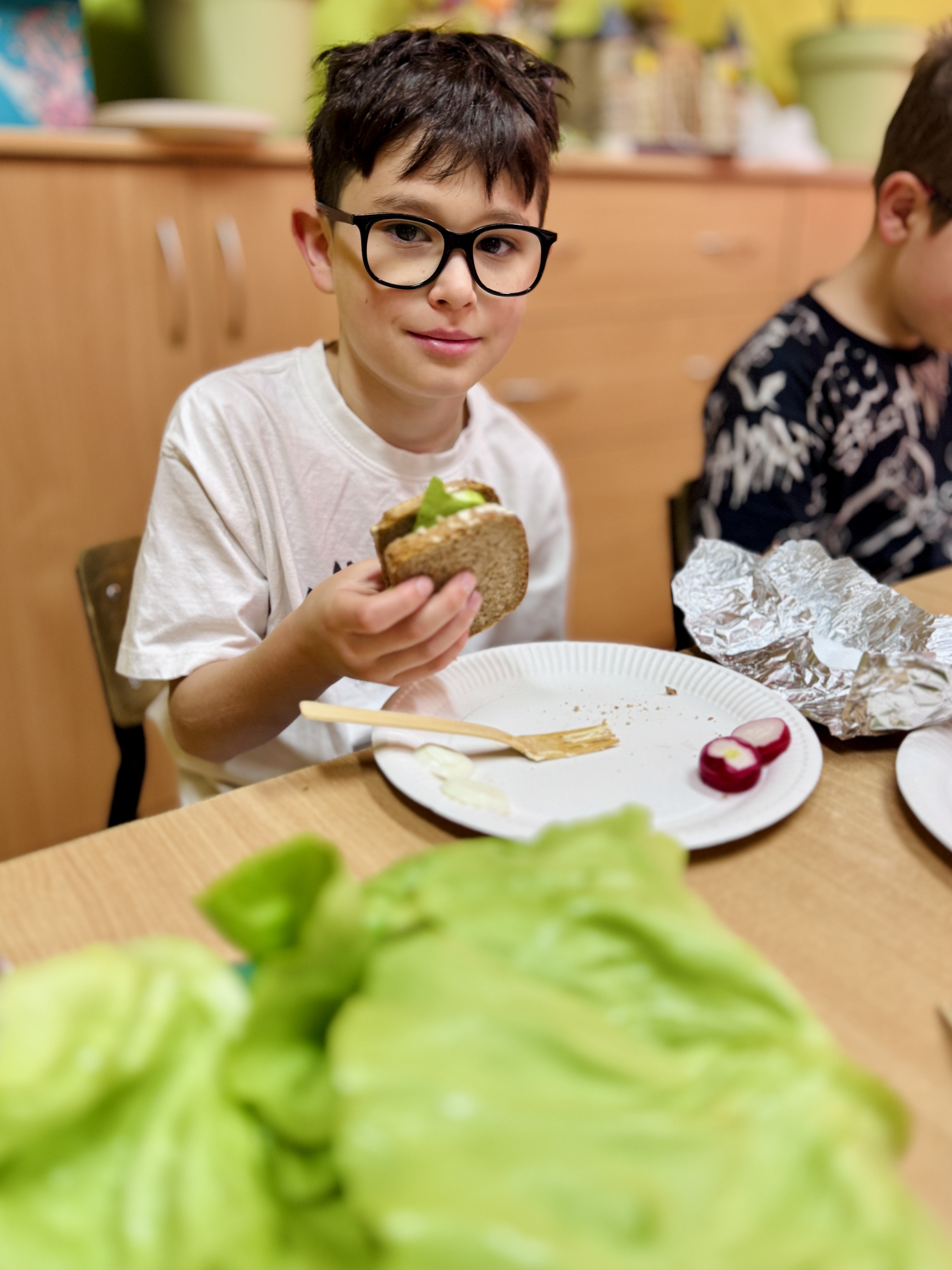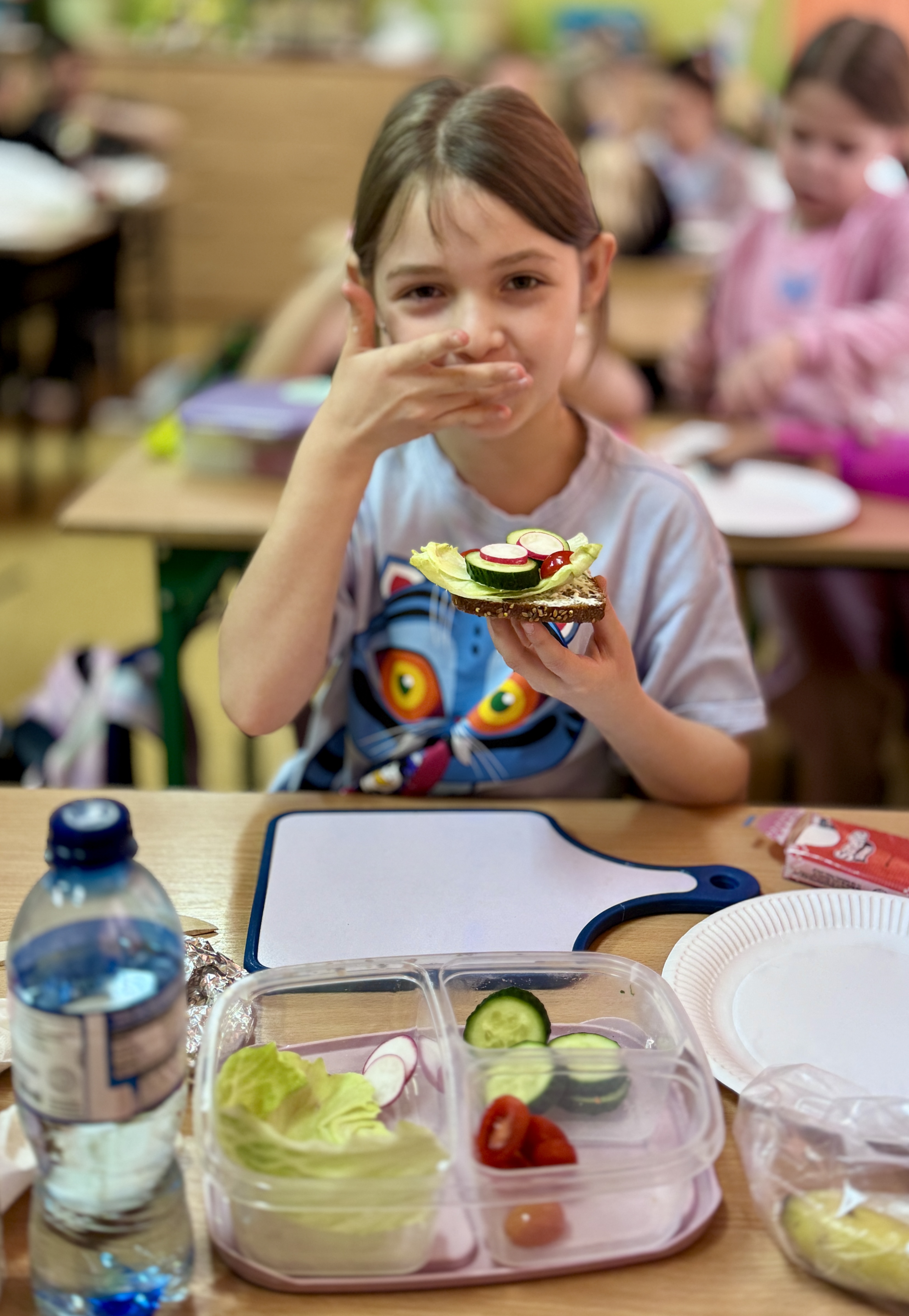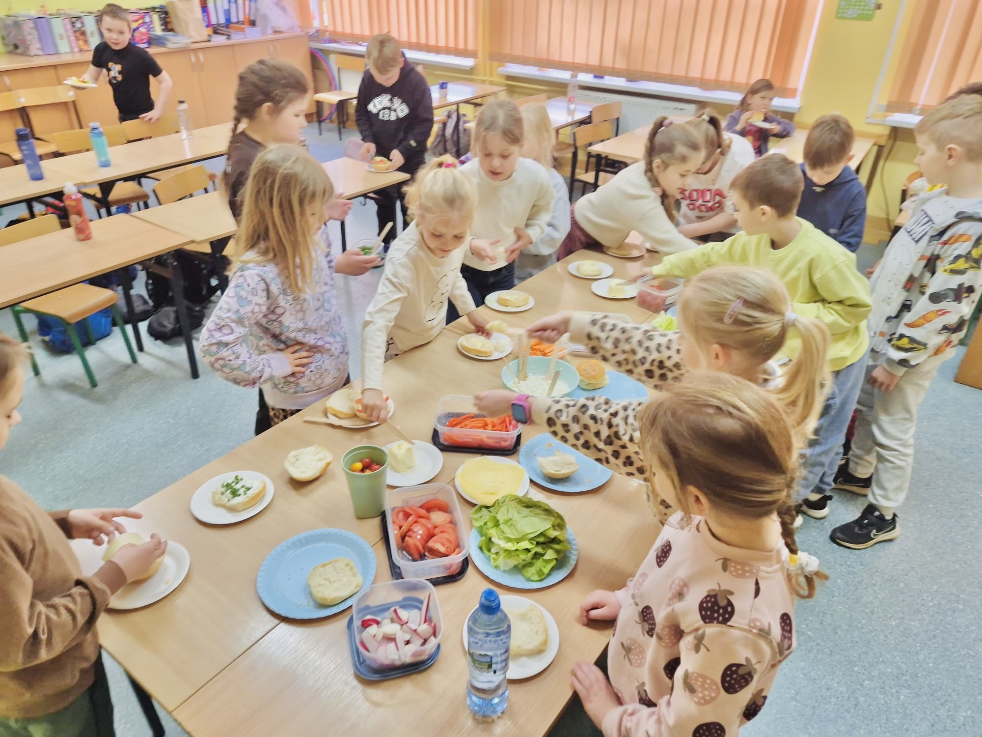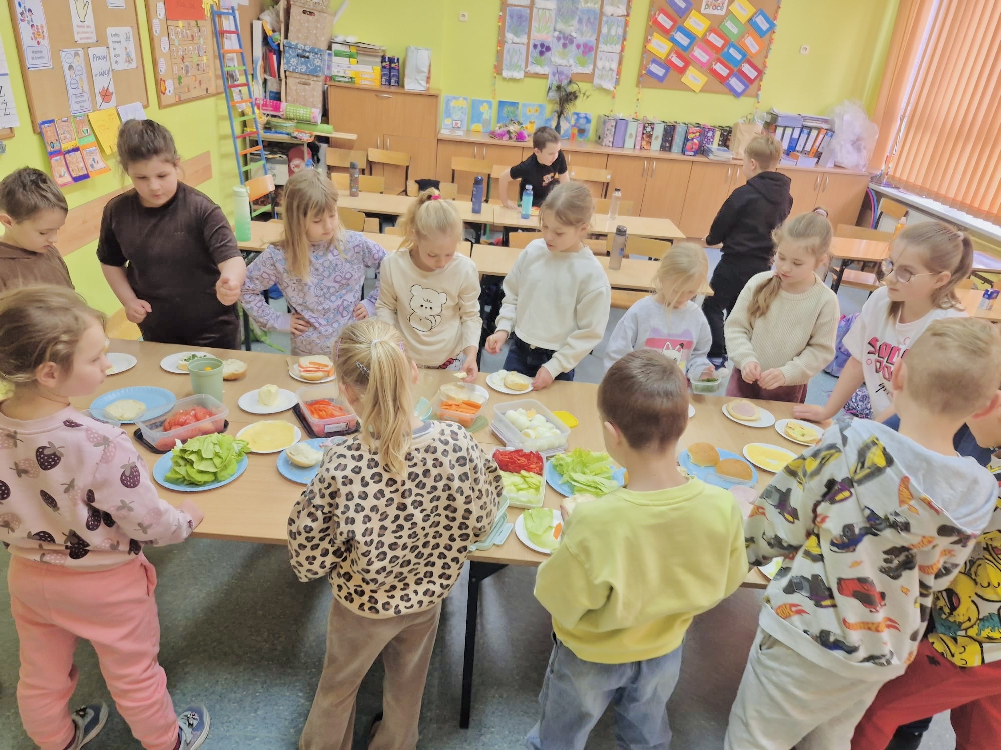 Uczniowie mieli możliwość przygotowania sałatek i kanapek podczas lekcji tematycznych w klasach oraz zajęć kulinarnych w świetlicy szkolnej.