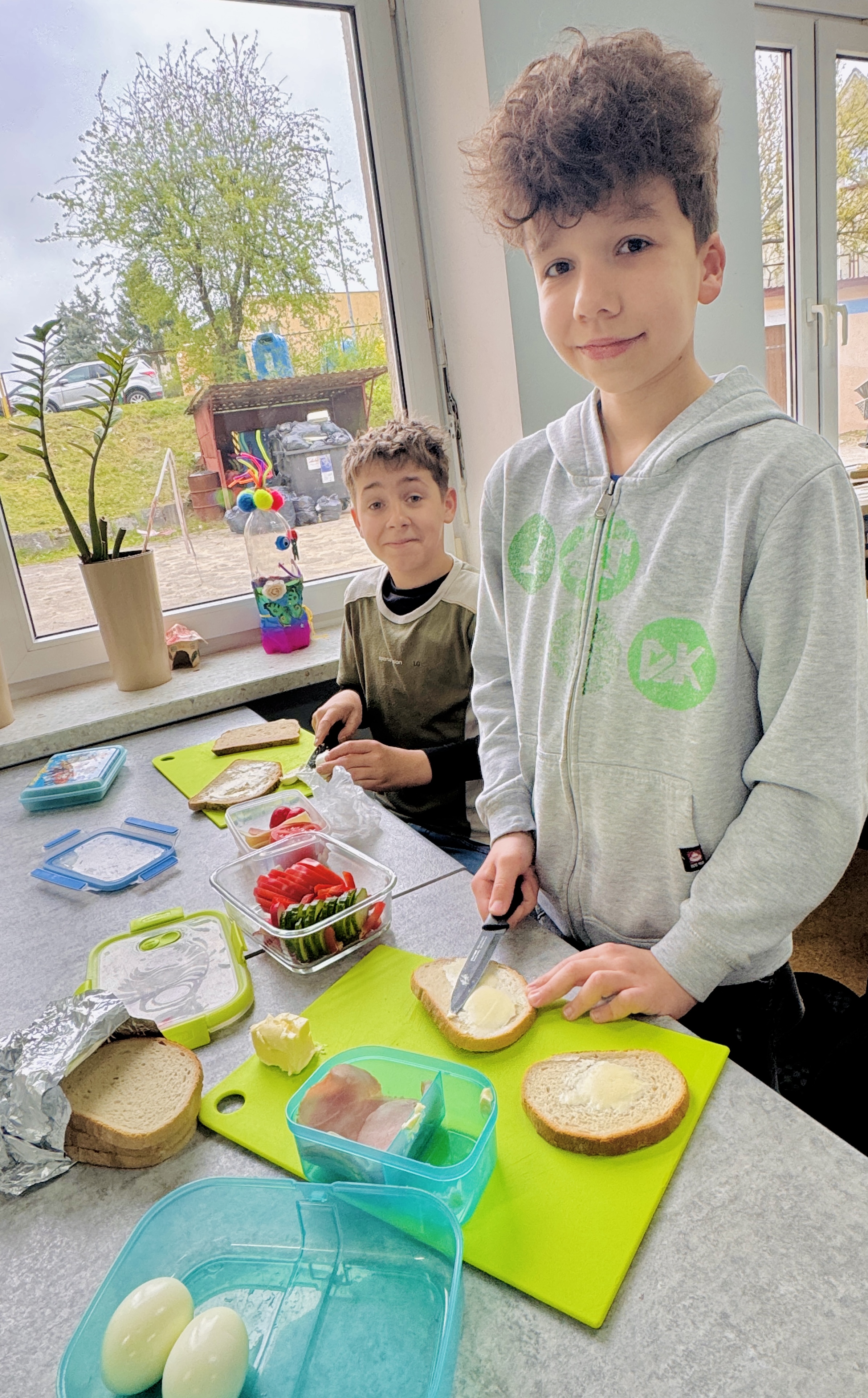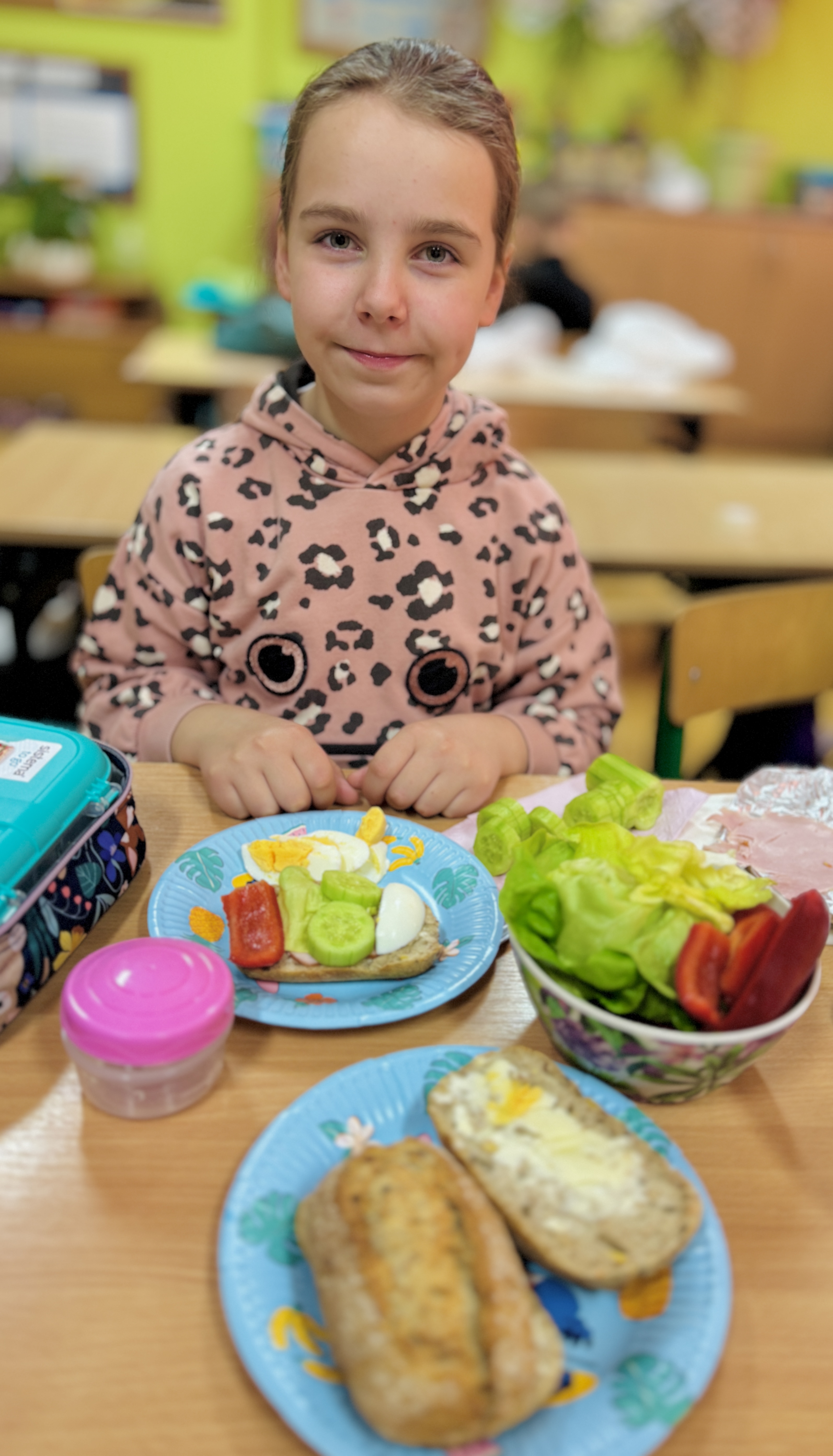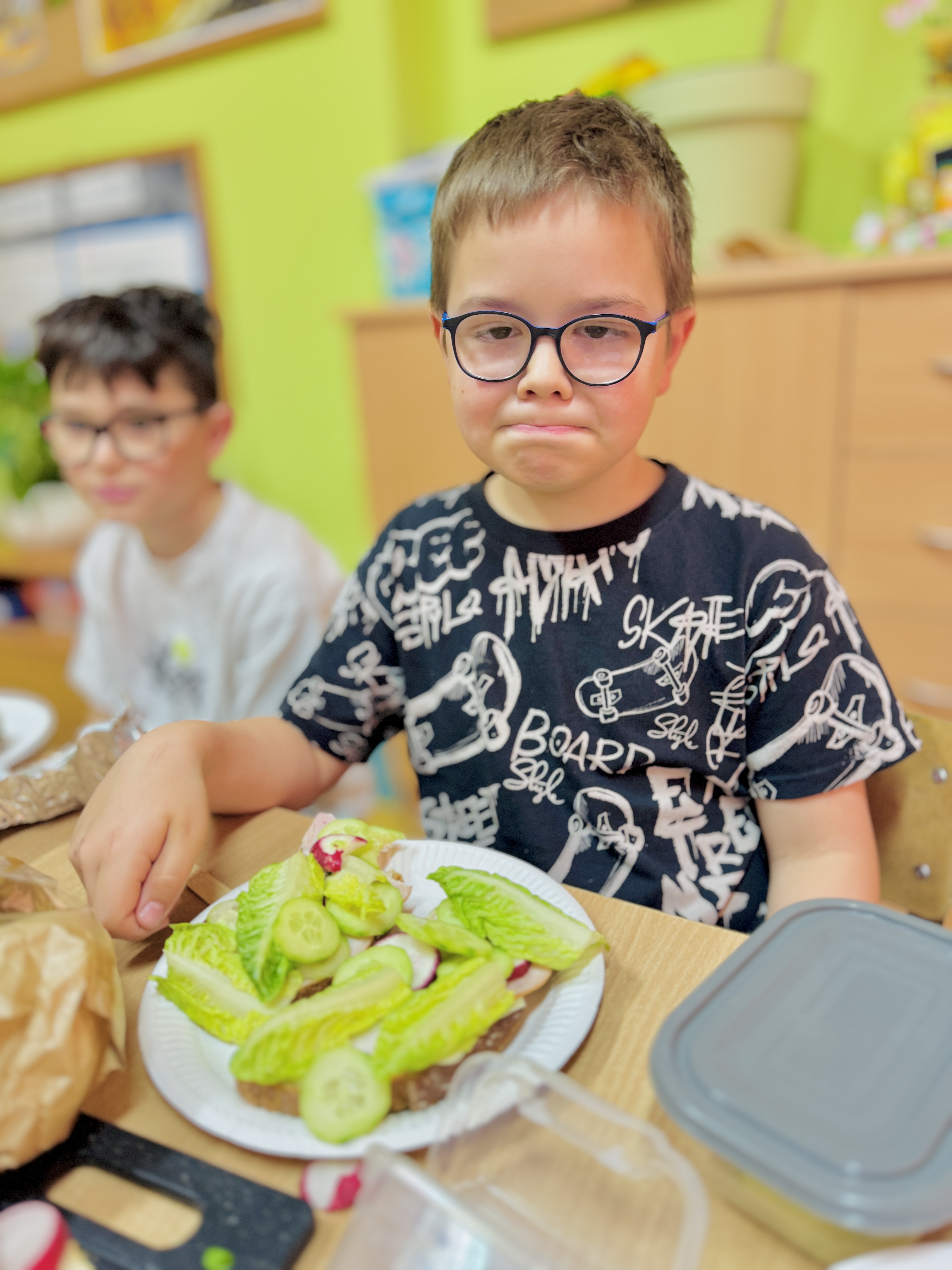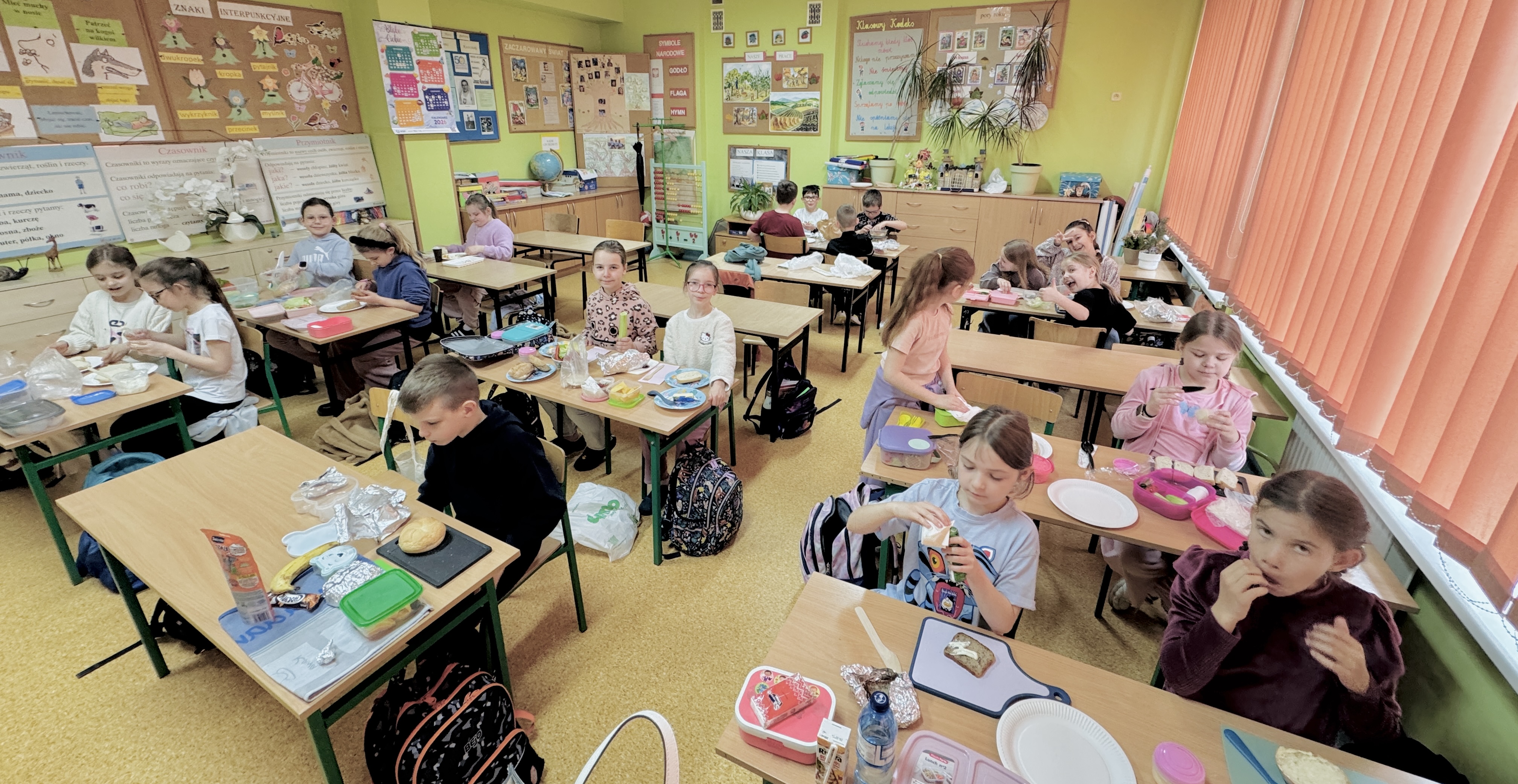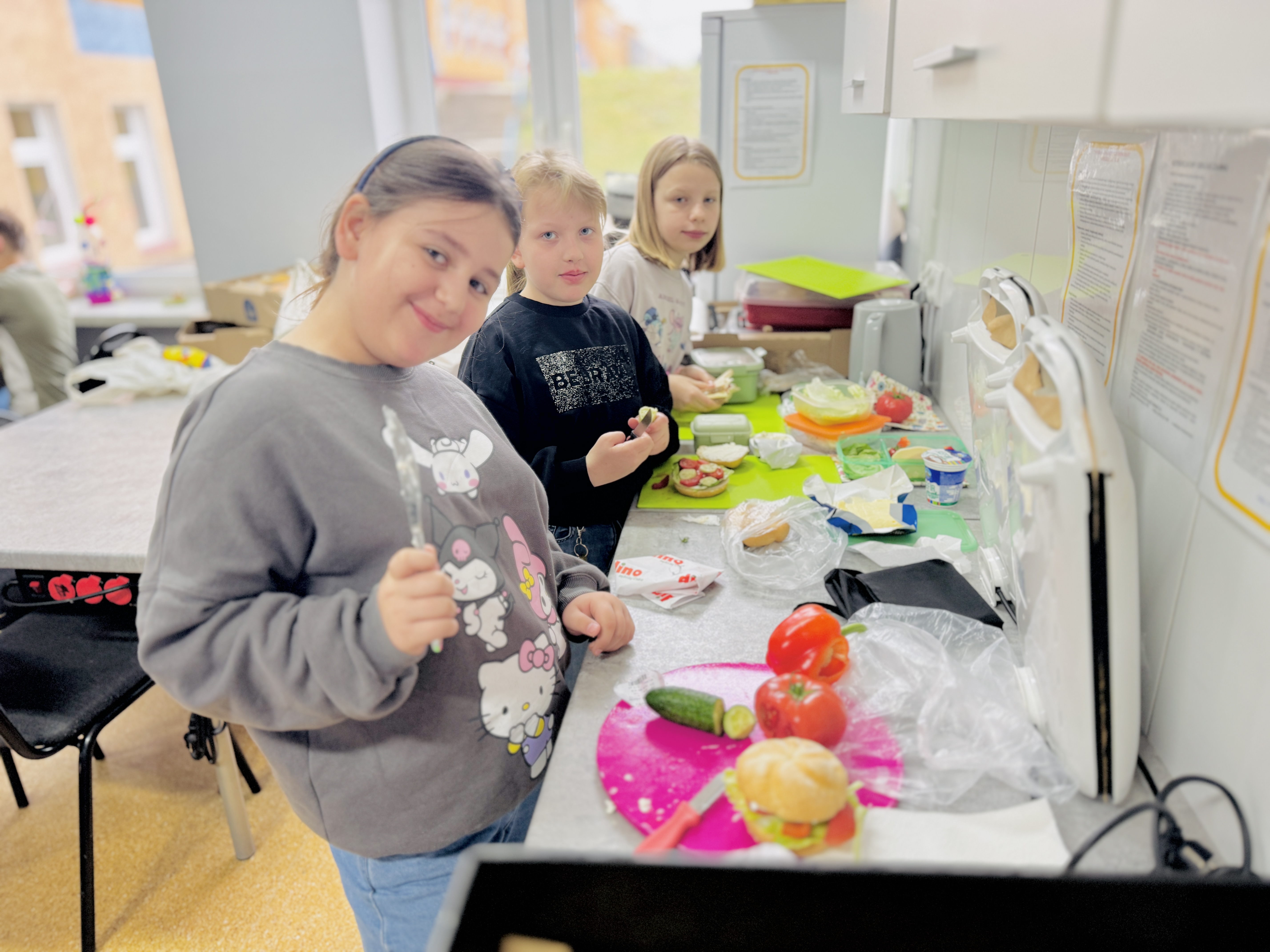 Uczniowie mieli możliwość przygotowania sałatek i kanapek podczas lekcji tematycznych w klasach oraz zajęć kulinarnych w świetlicy szkolnej.
