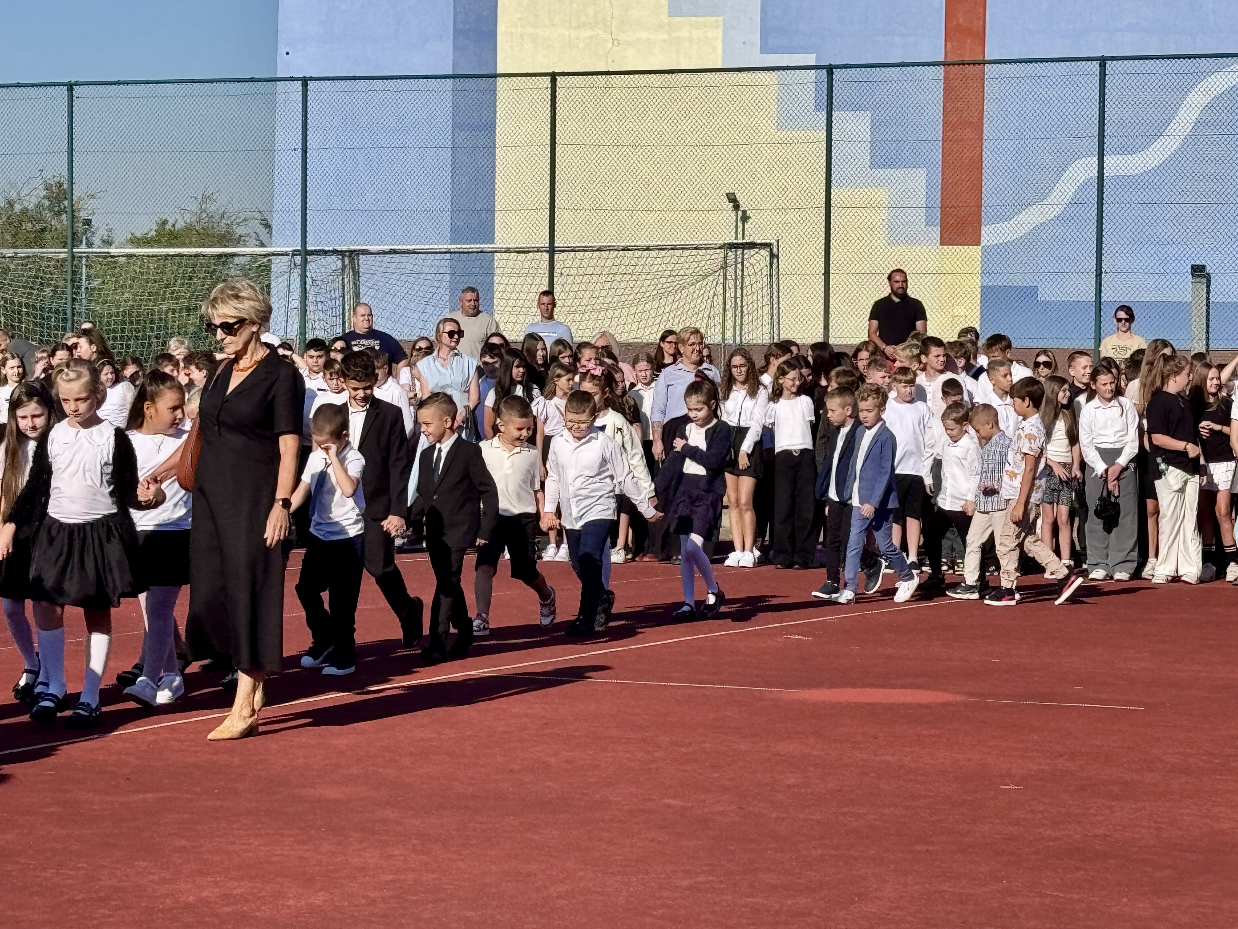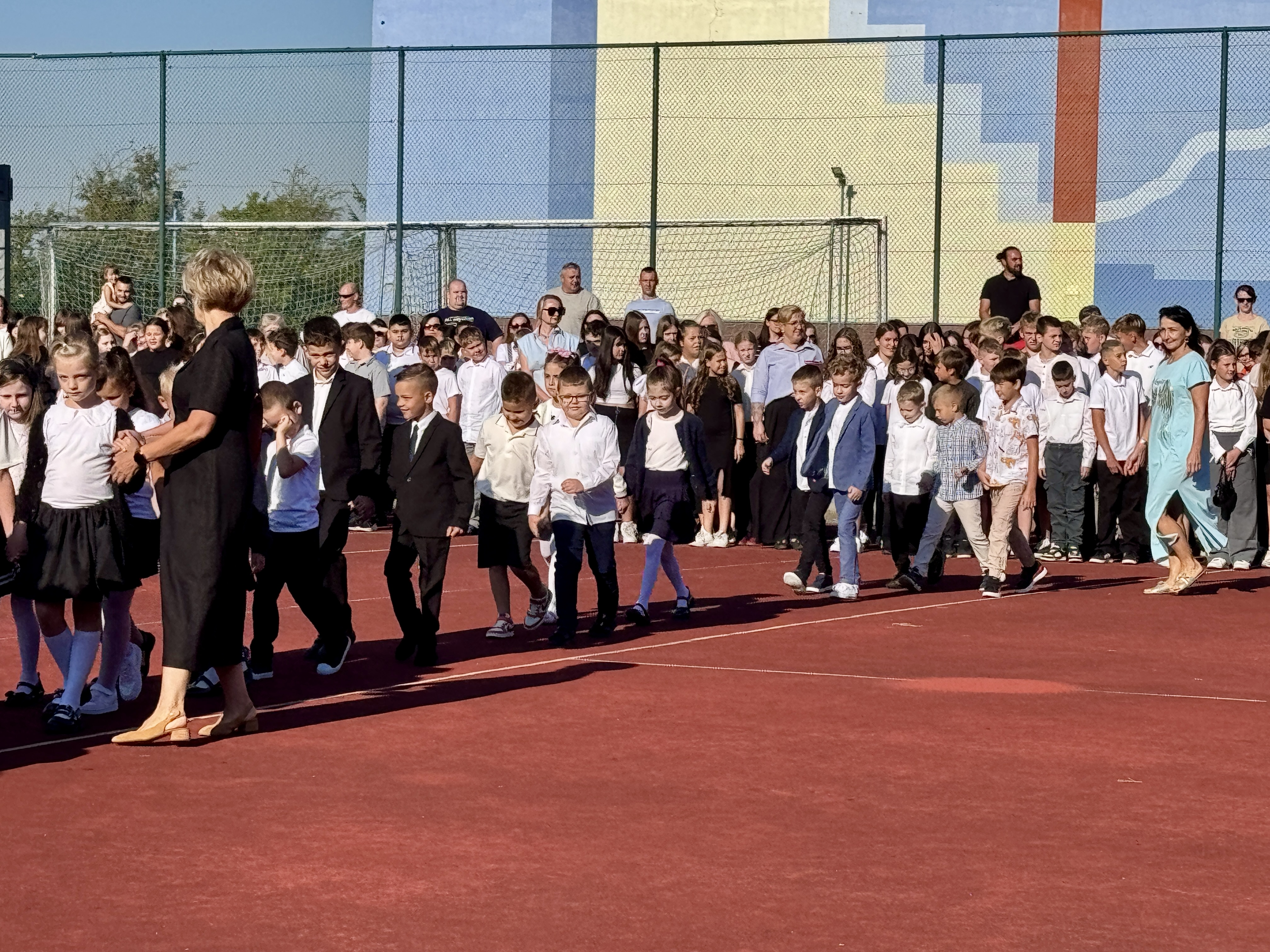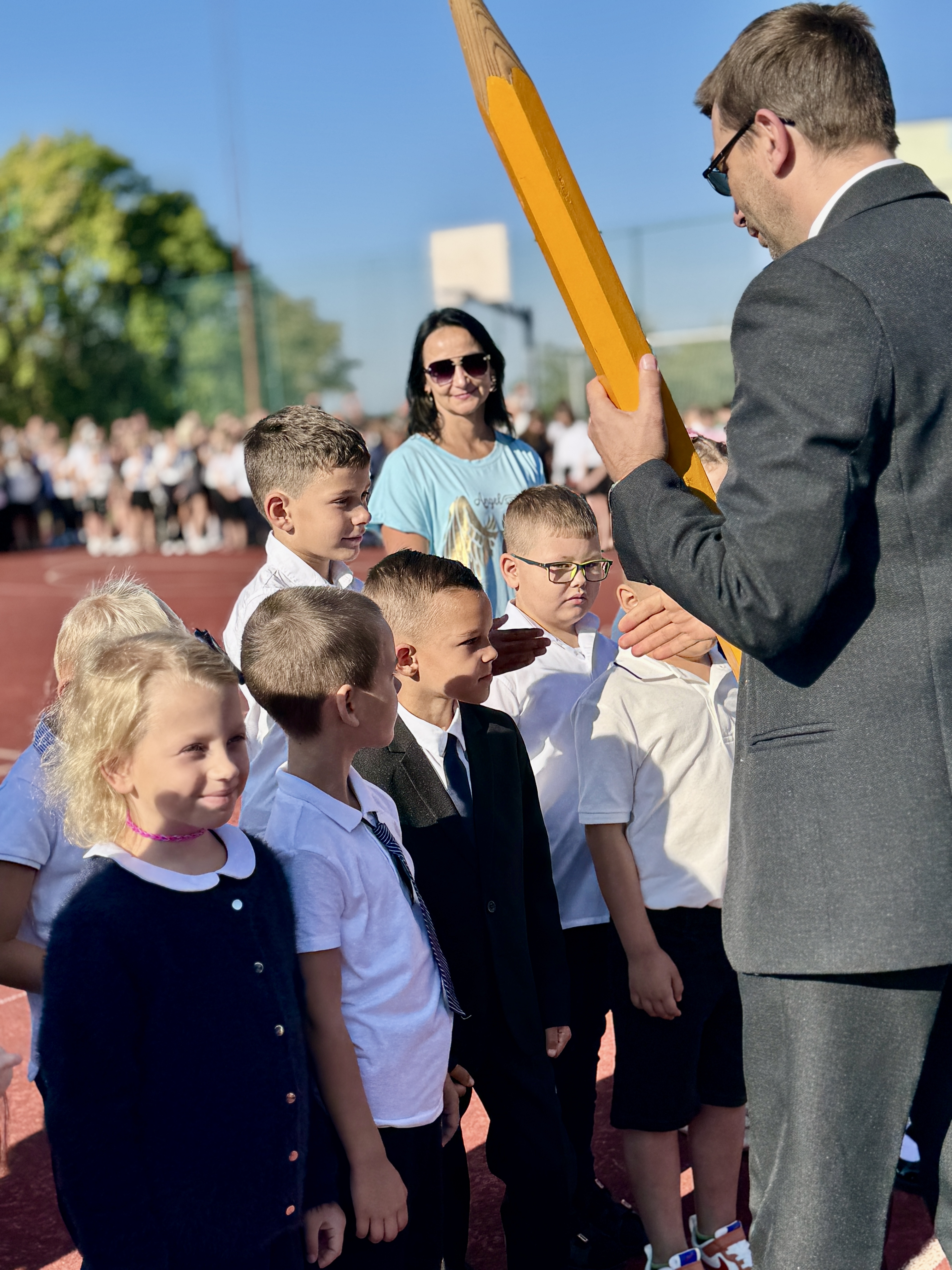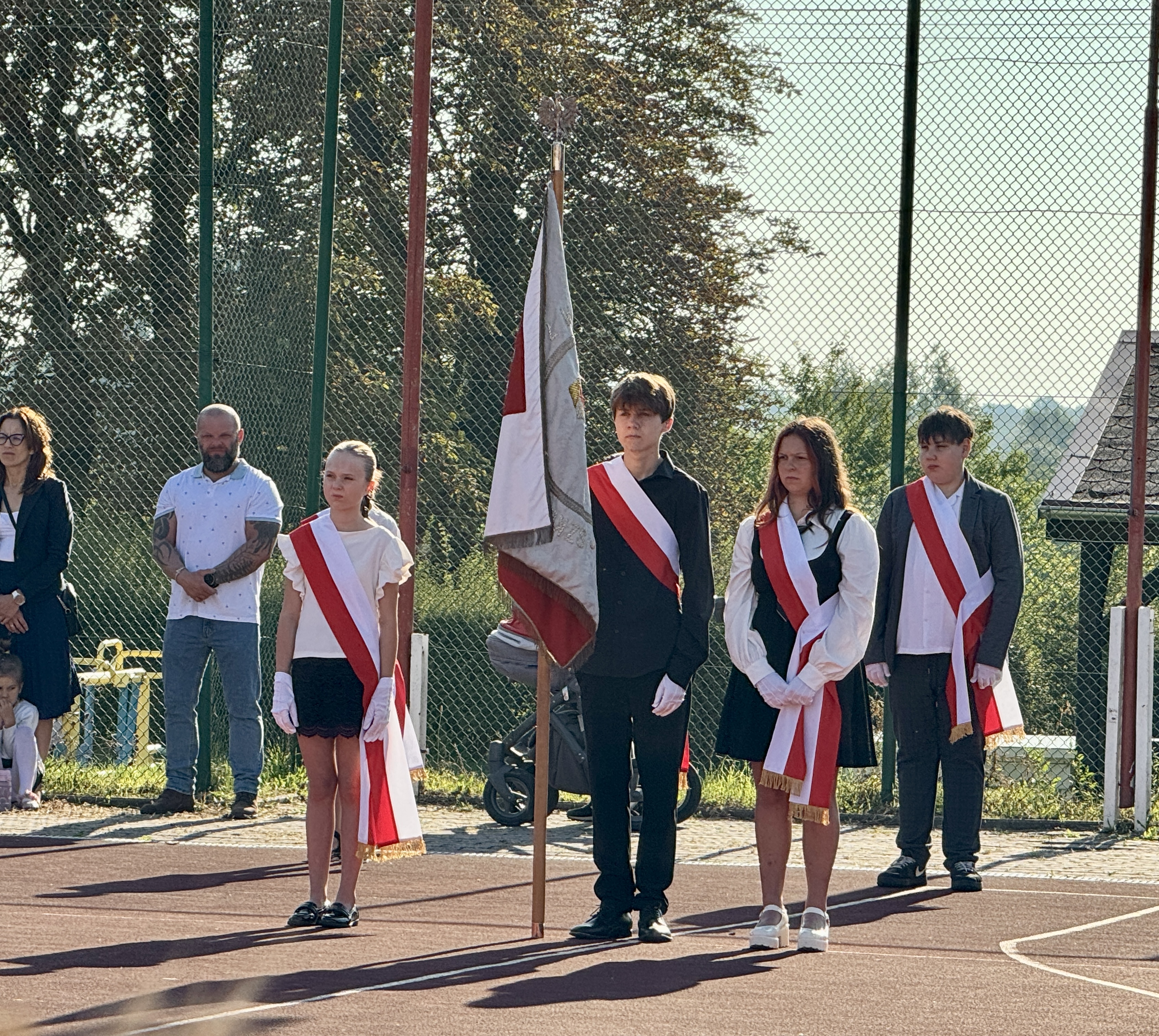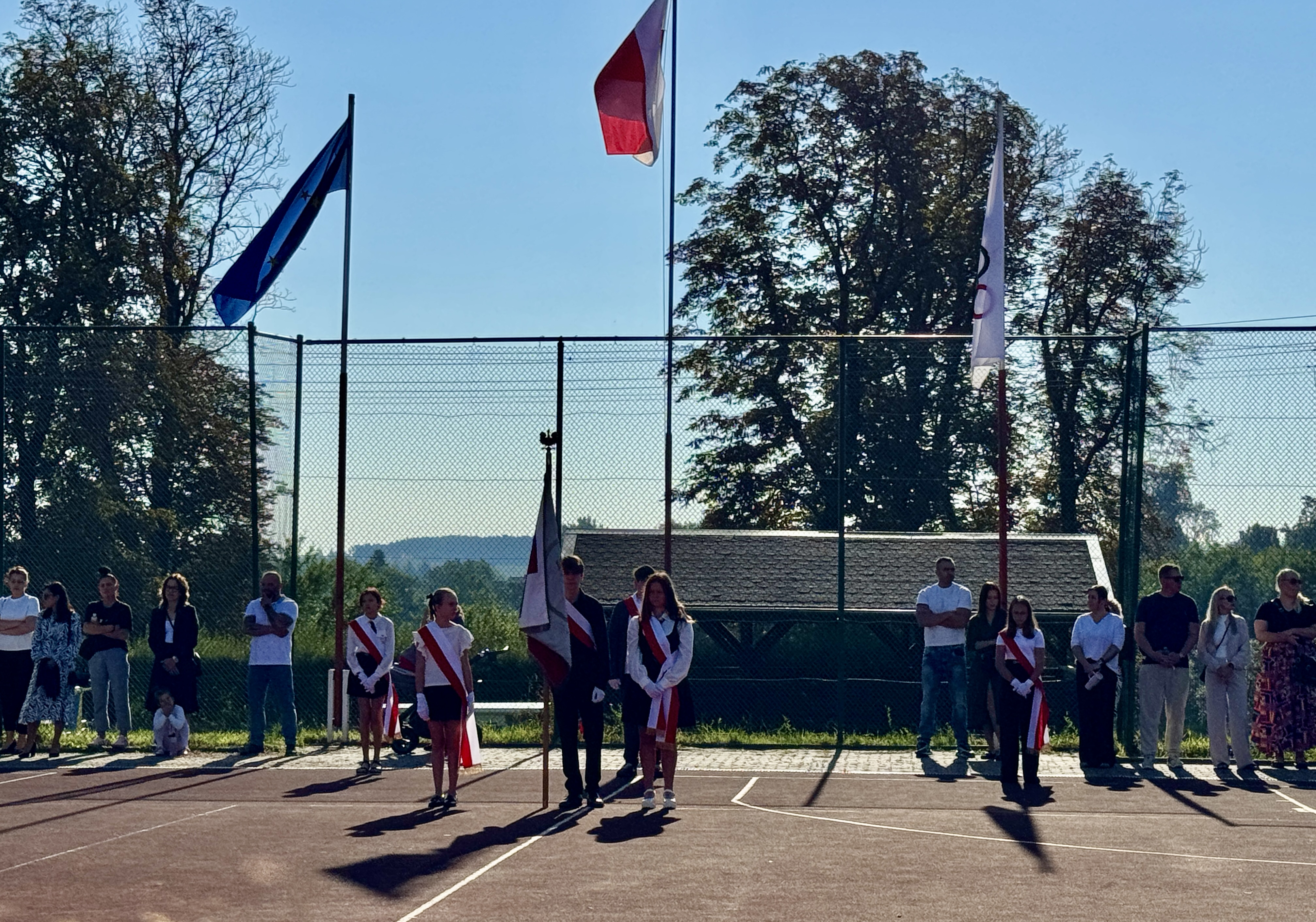 Uczniowie, Rodzice i Pracownicy SP2 zgromadzili się na boisku przed szkołą, by uroczyście rozpocząć nowy rok szkolny 2025/2026.