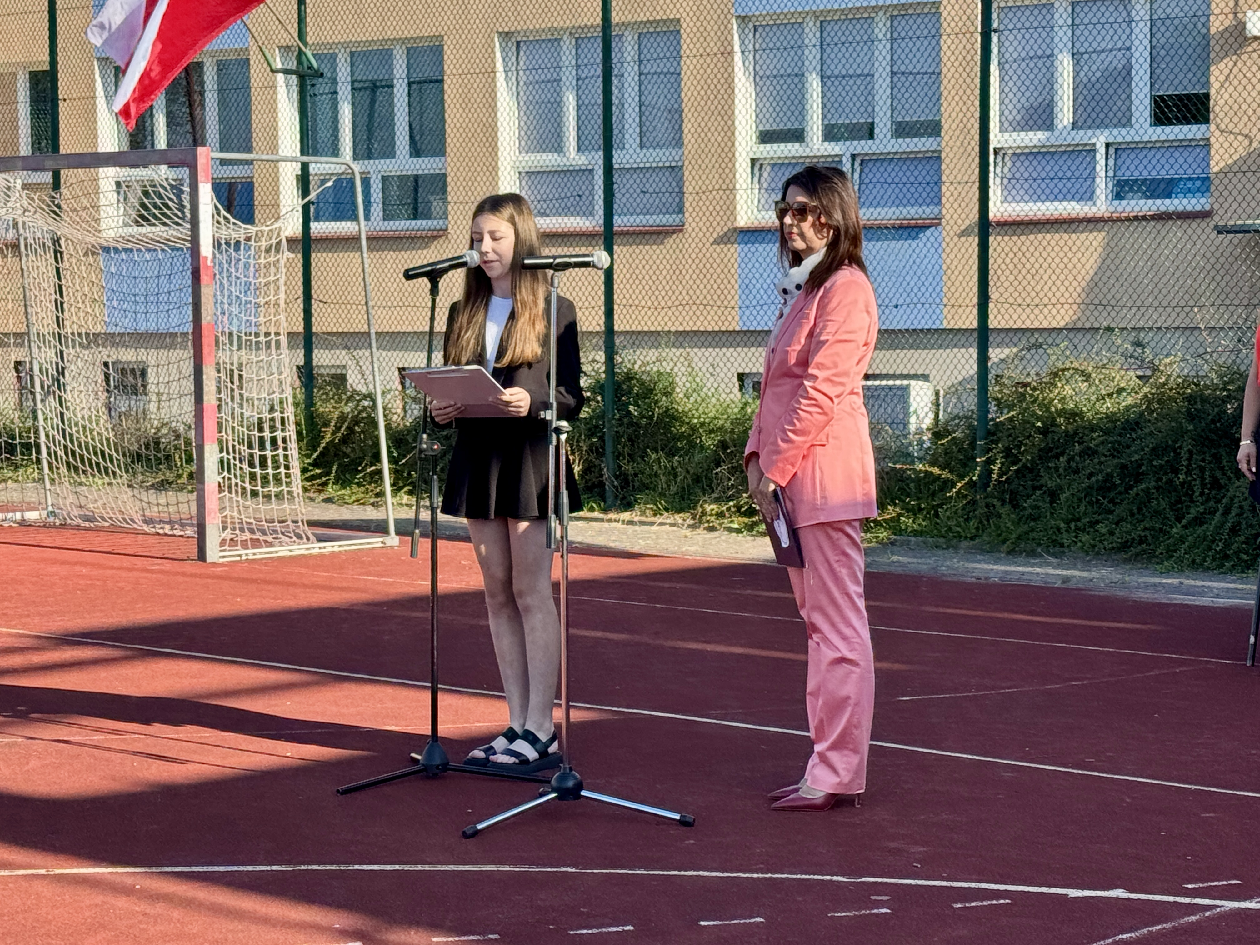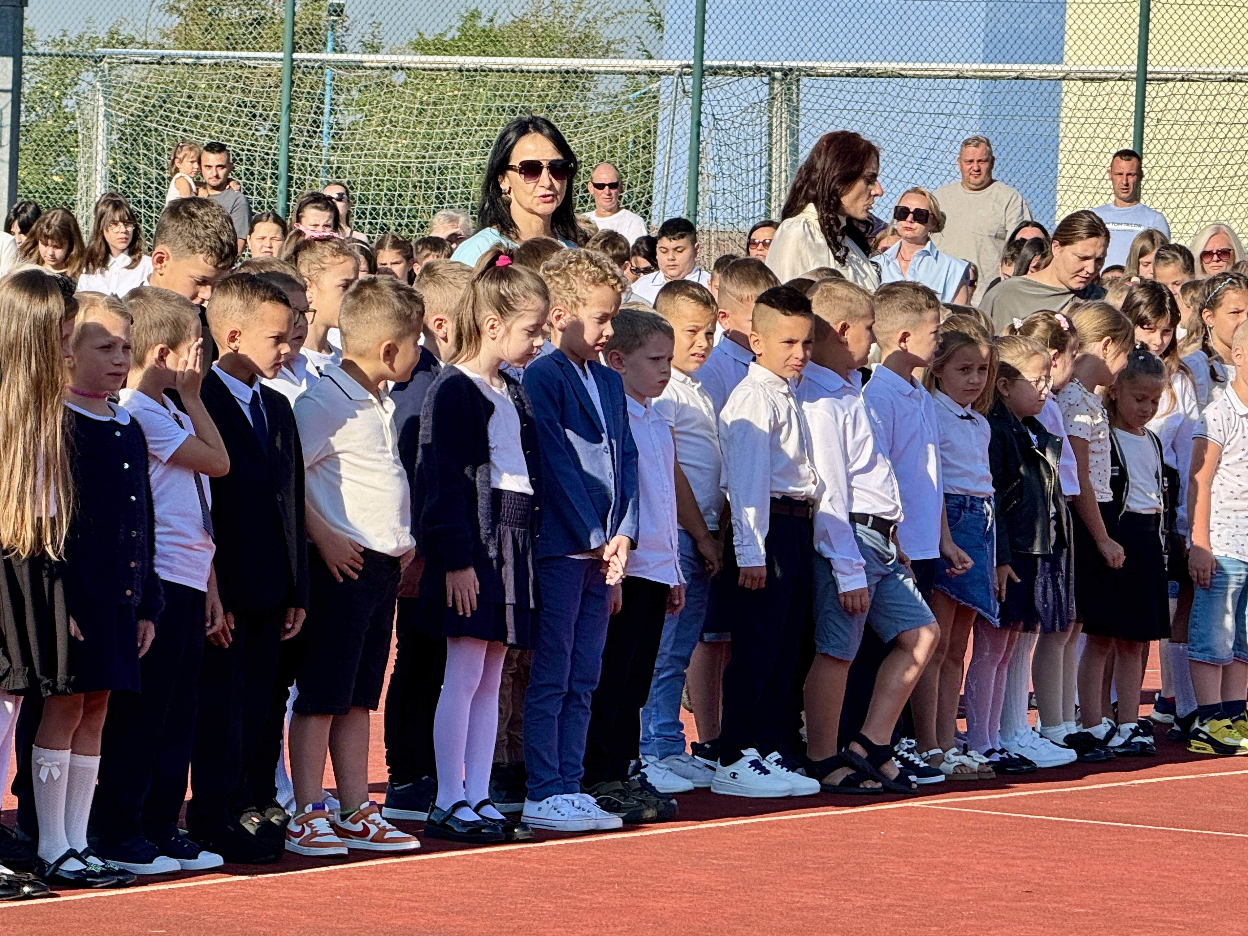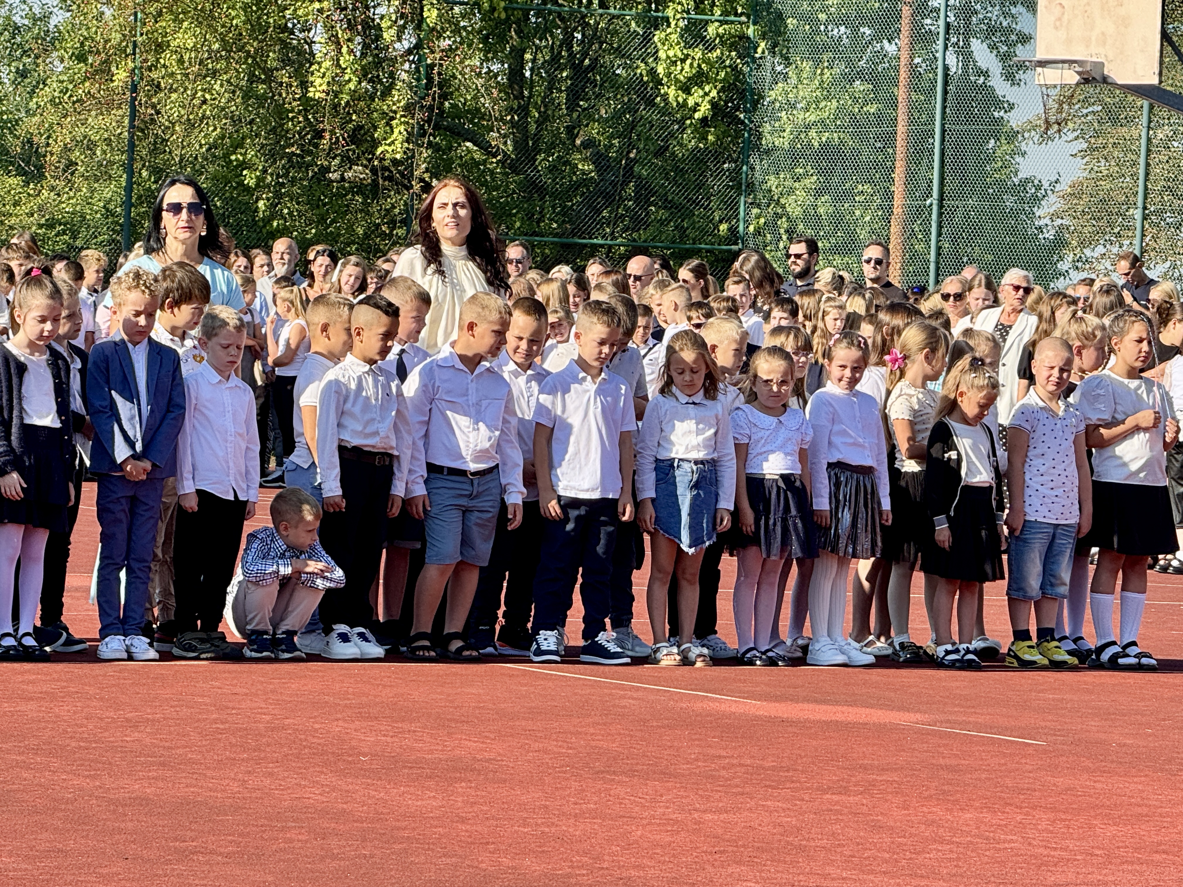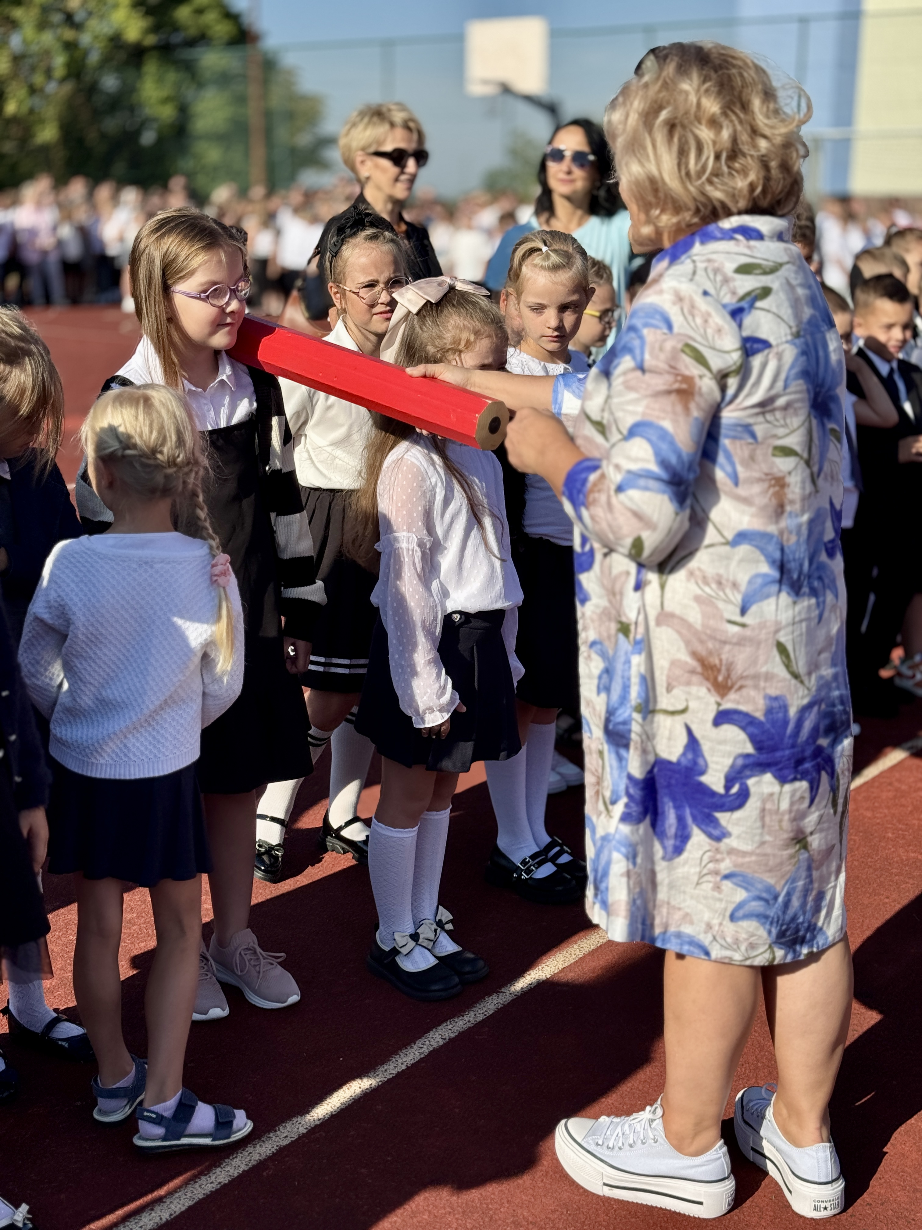 Uczniowie, Rodzice i Pracownicy SP2 zgromadzili się na boisku przed szkołą, by uroczyście rozpocząć nowy rok szkolny 2025/2026.