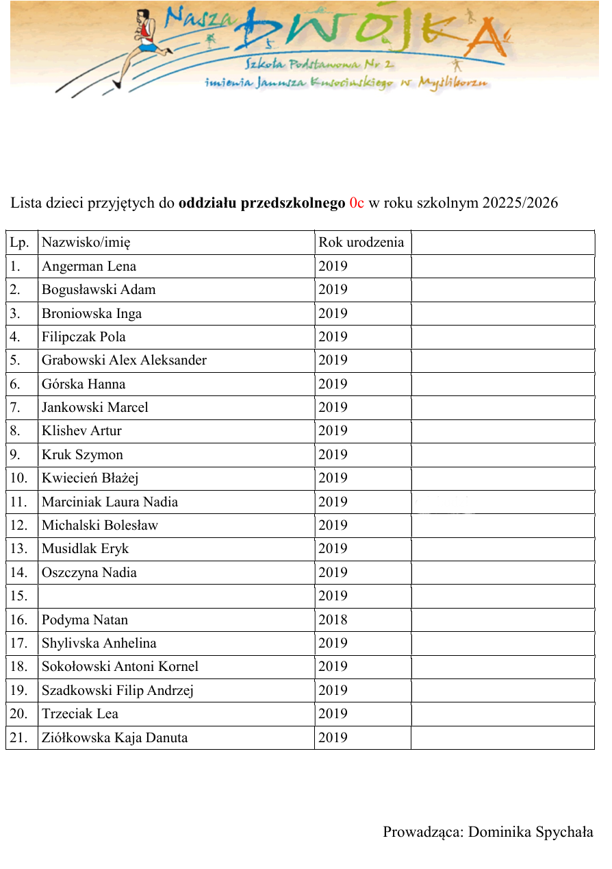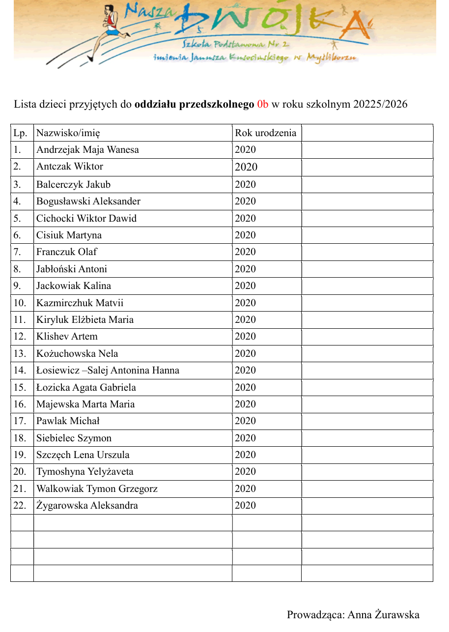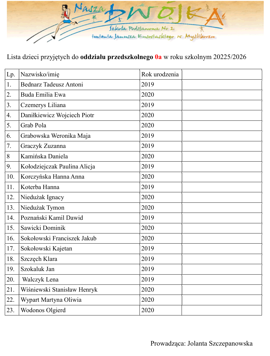Prosimy, aby dzieci zabrały ze sobą kapcie.