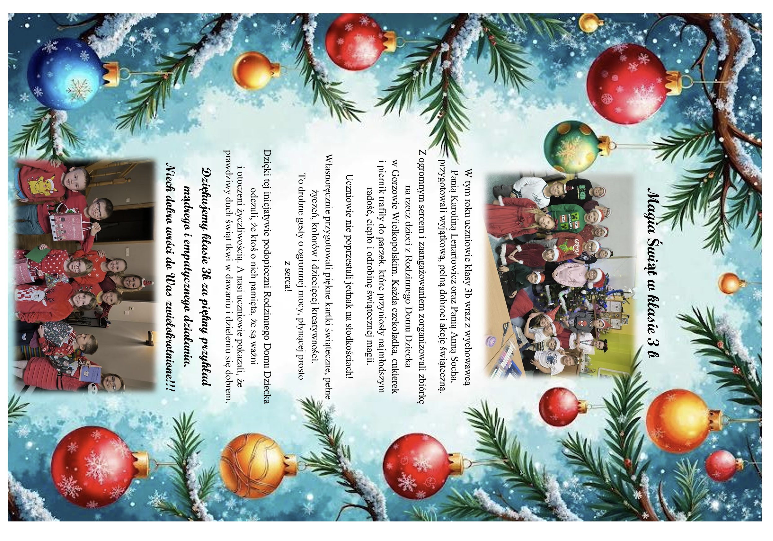 Magia Świąt w kl. 3b - zbiórka na rzecz dzieci z Rodzinnego Domu Dziecka w Gorzowie Wlkp.