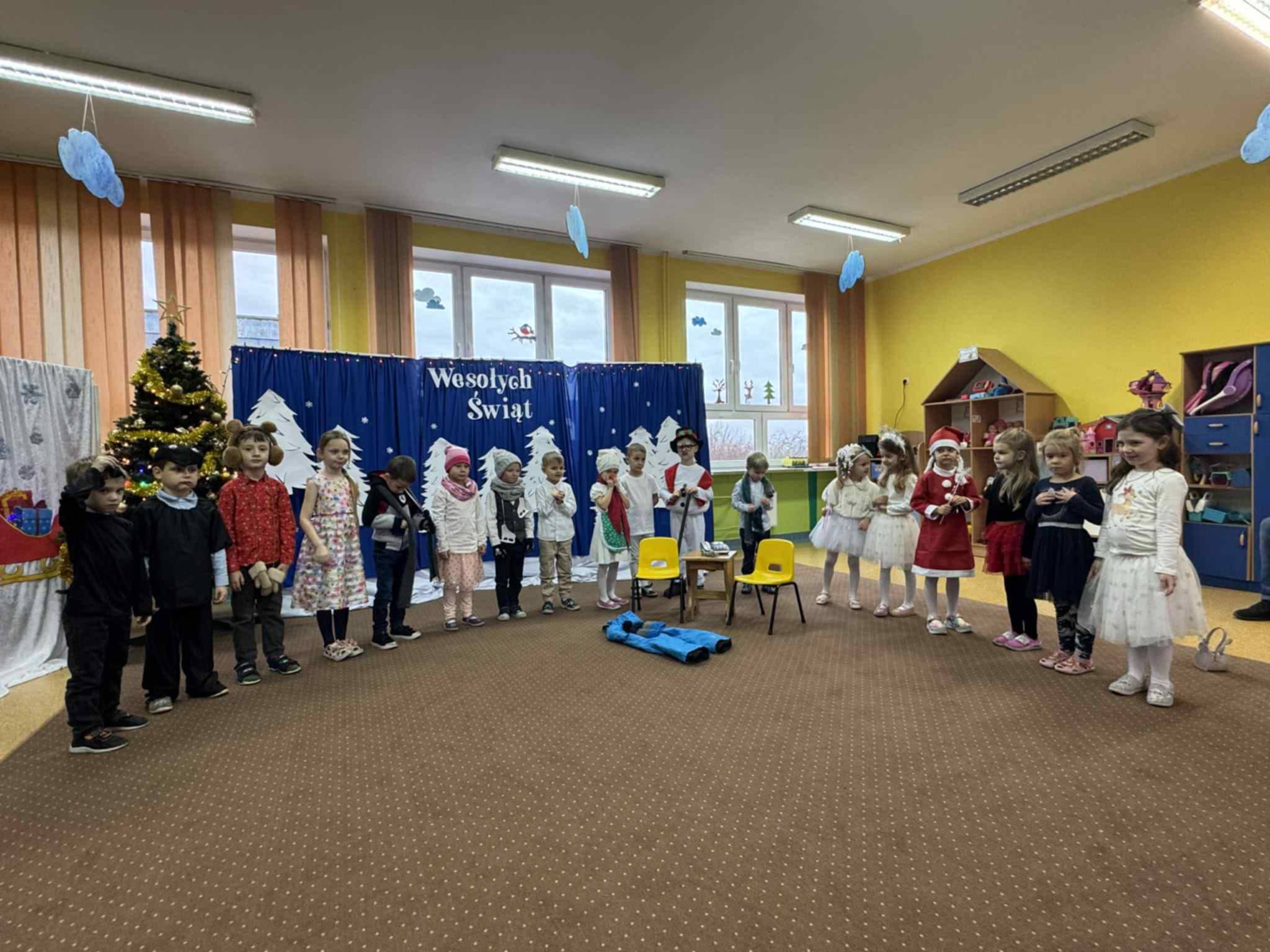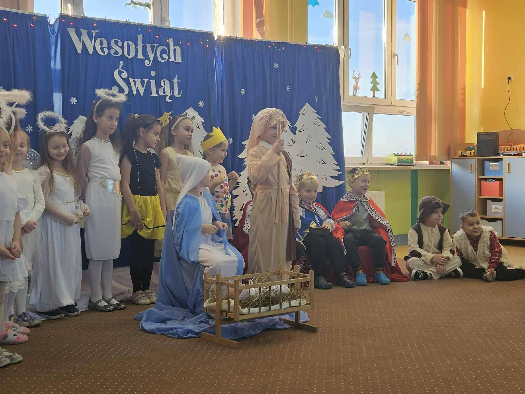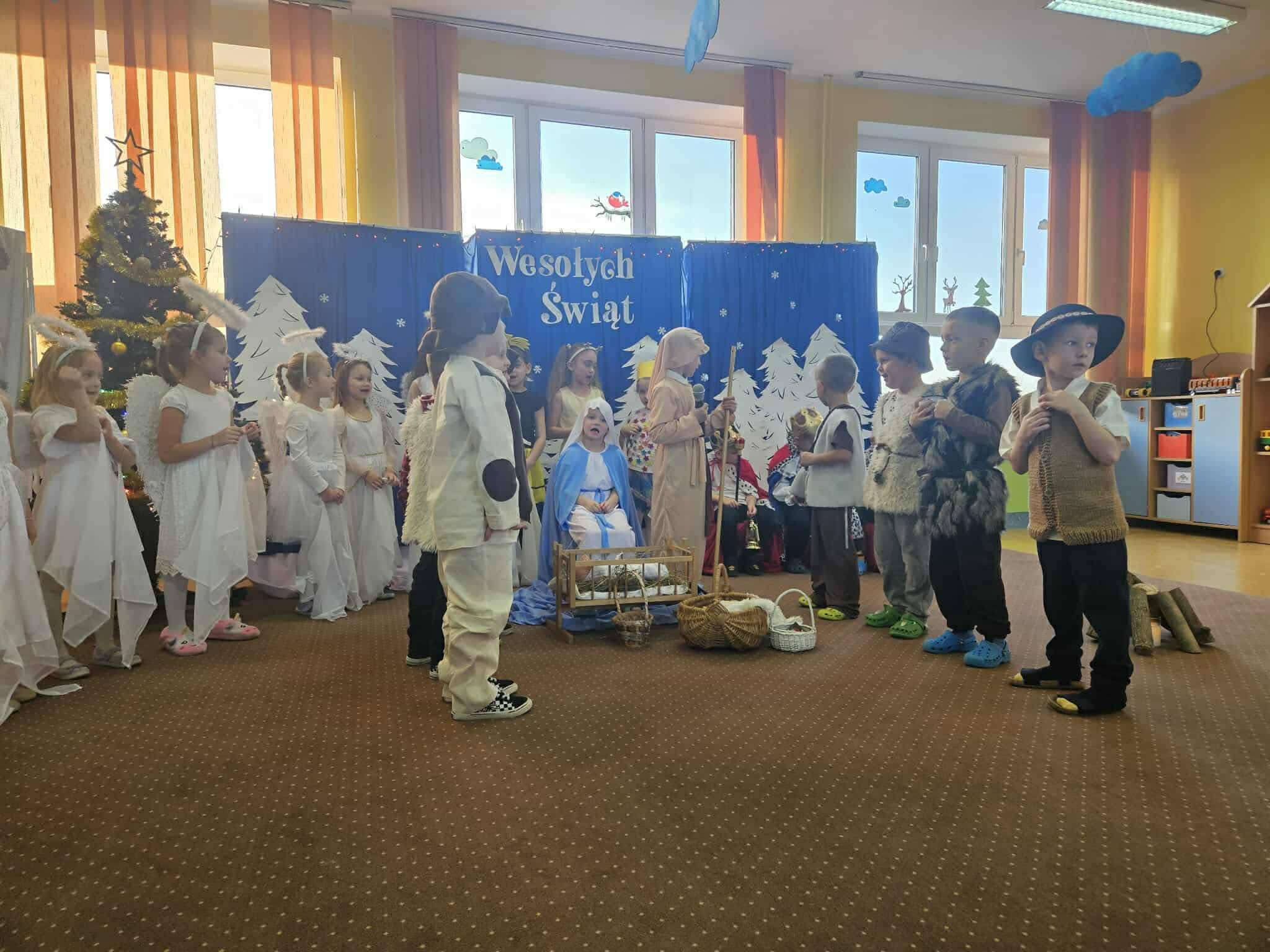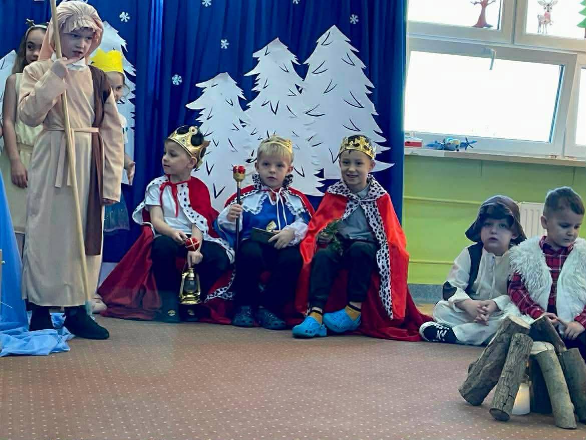 W związku ze zbliżającymi się świętami Bożego Narodzenia, każda z grup przedszkolnych przygotowała własną inscenizację. Dzieci zaprezentowały jasełka oraz zimowe przedstawienia o bałwanku. Występy zostały ciepło przyjęte przez zgromadzonych gości i wprowadziły wszystkich w świąteczny, radosny nastrój. Spotkanie przebiegło w miłej i serdecznej atmosferze przy wigilijnym stole.