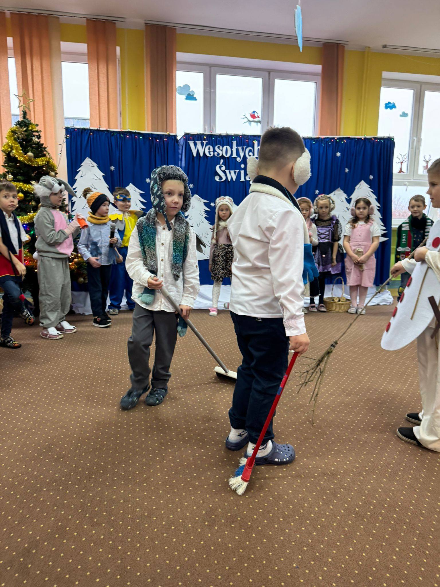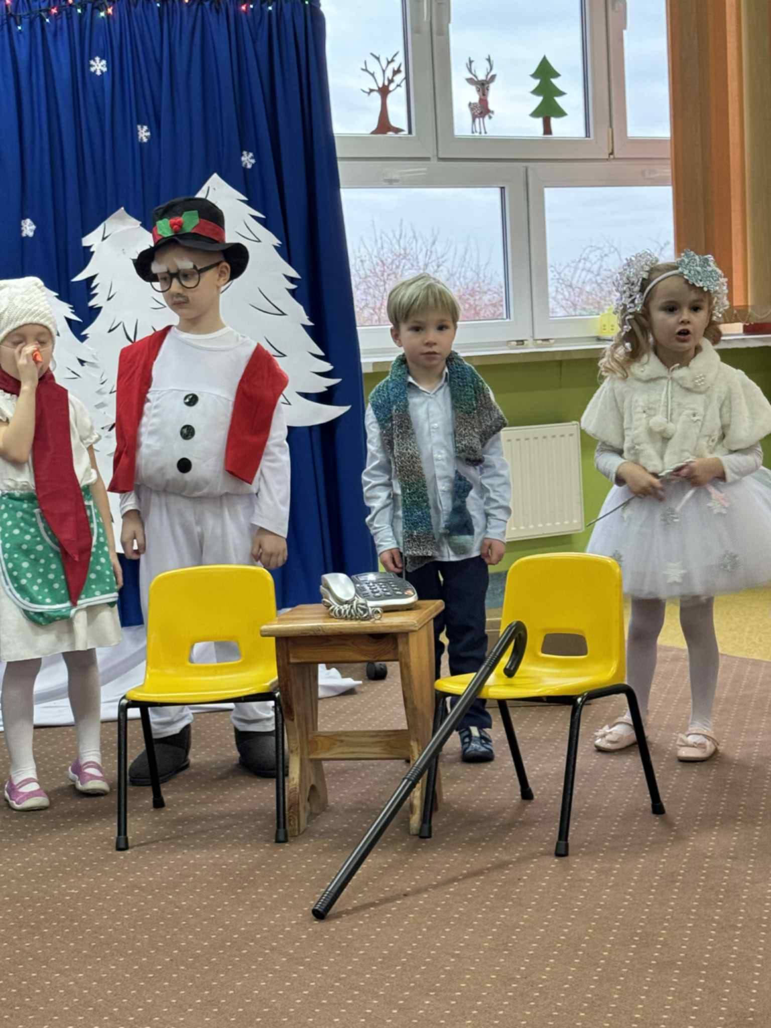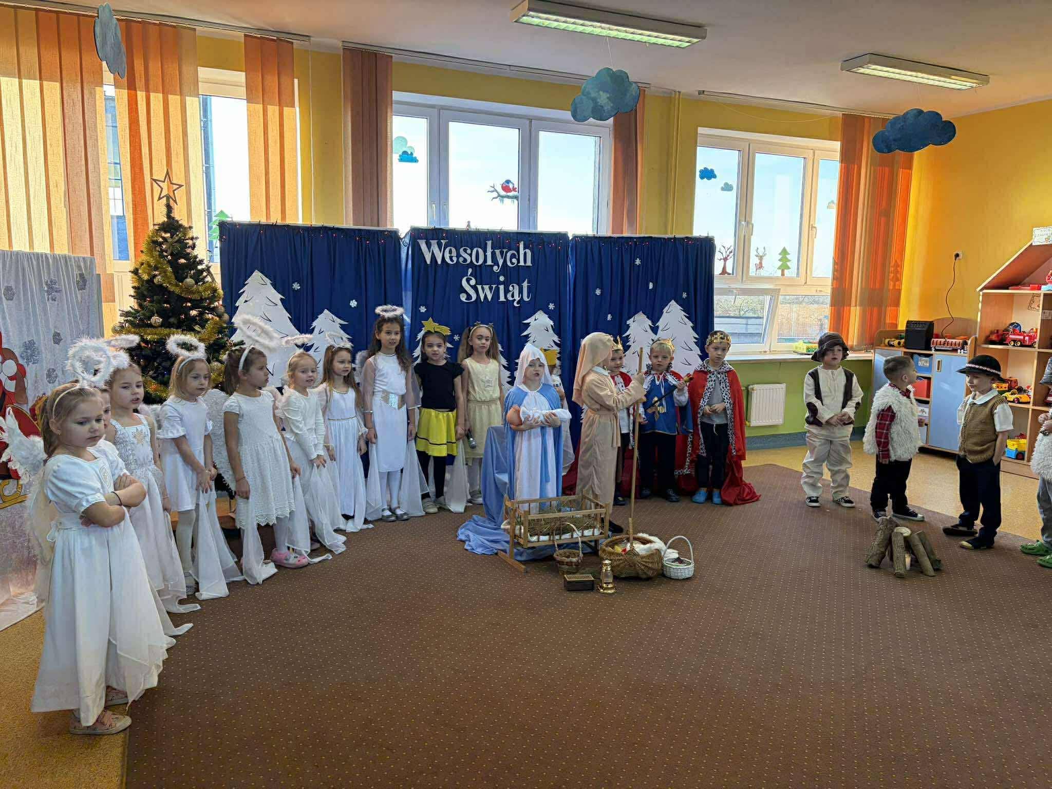 W związku ze zbliżającymi się świętami Bożego Narodzenia, każda z grup przedszkolnych przygotowała własną inscenizację. Dzieci zaprezentowały jasełka oraz zimowe przedstawienia o bałwanku. Występy zostały ciepło przyjęte przez zgromadzonych gości i wprowadziły wszystkich w świąteczny, radosny nastrój. Spotkanie przebiegło w miłej i serdecznej atmosferze przy wigilijnym stole.