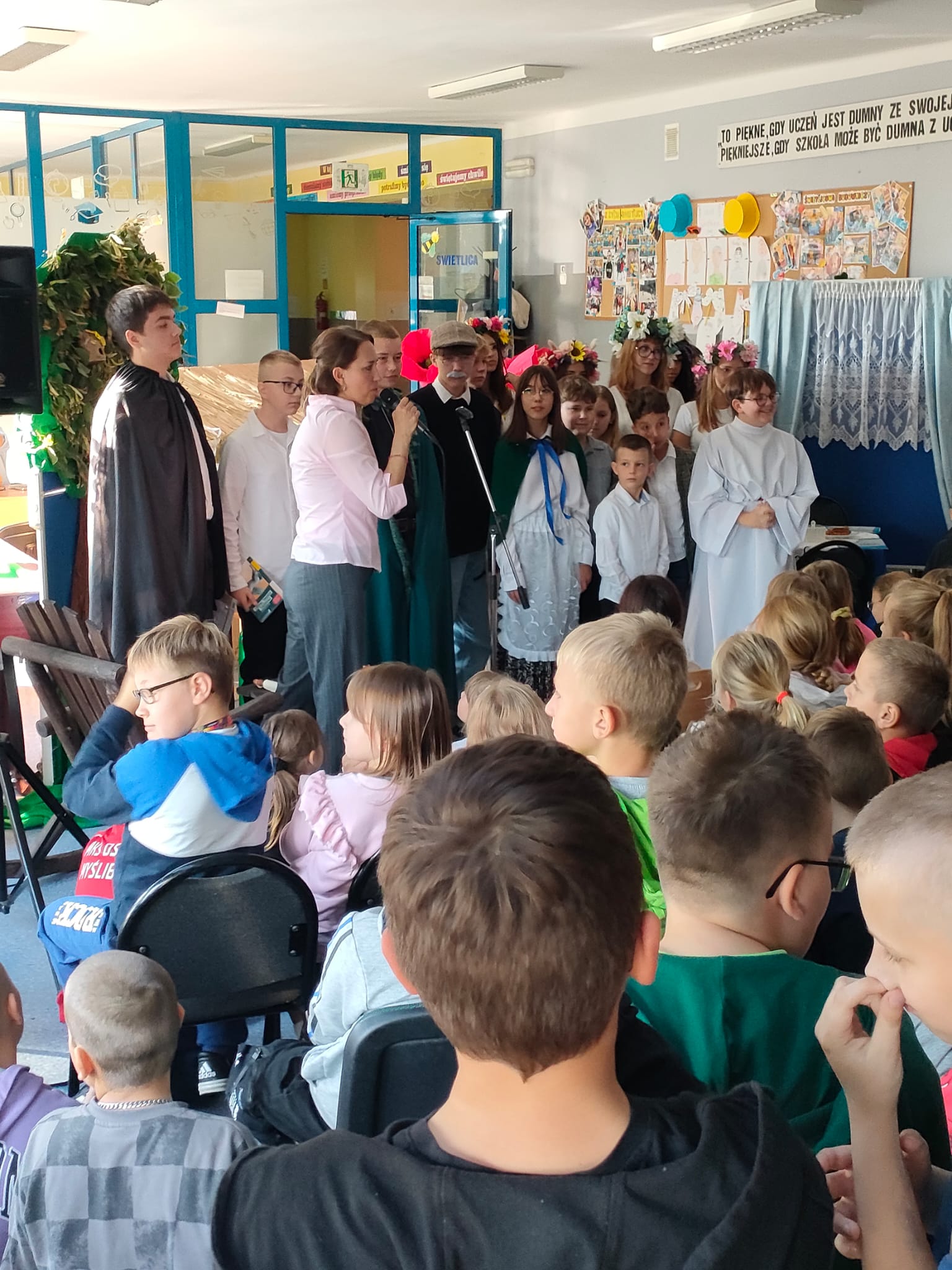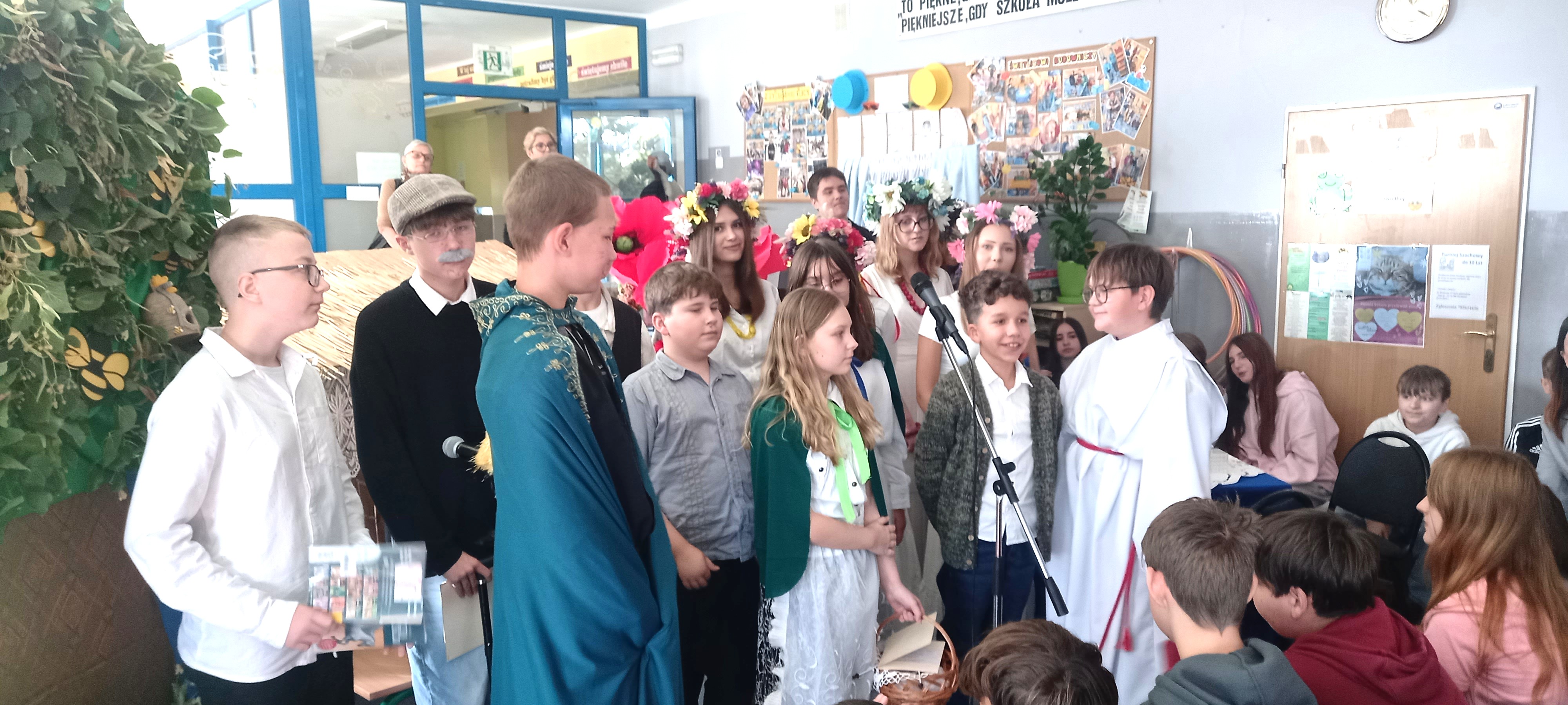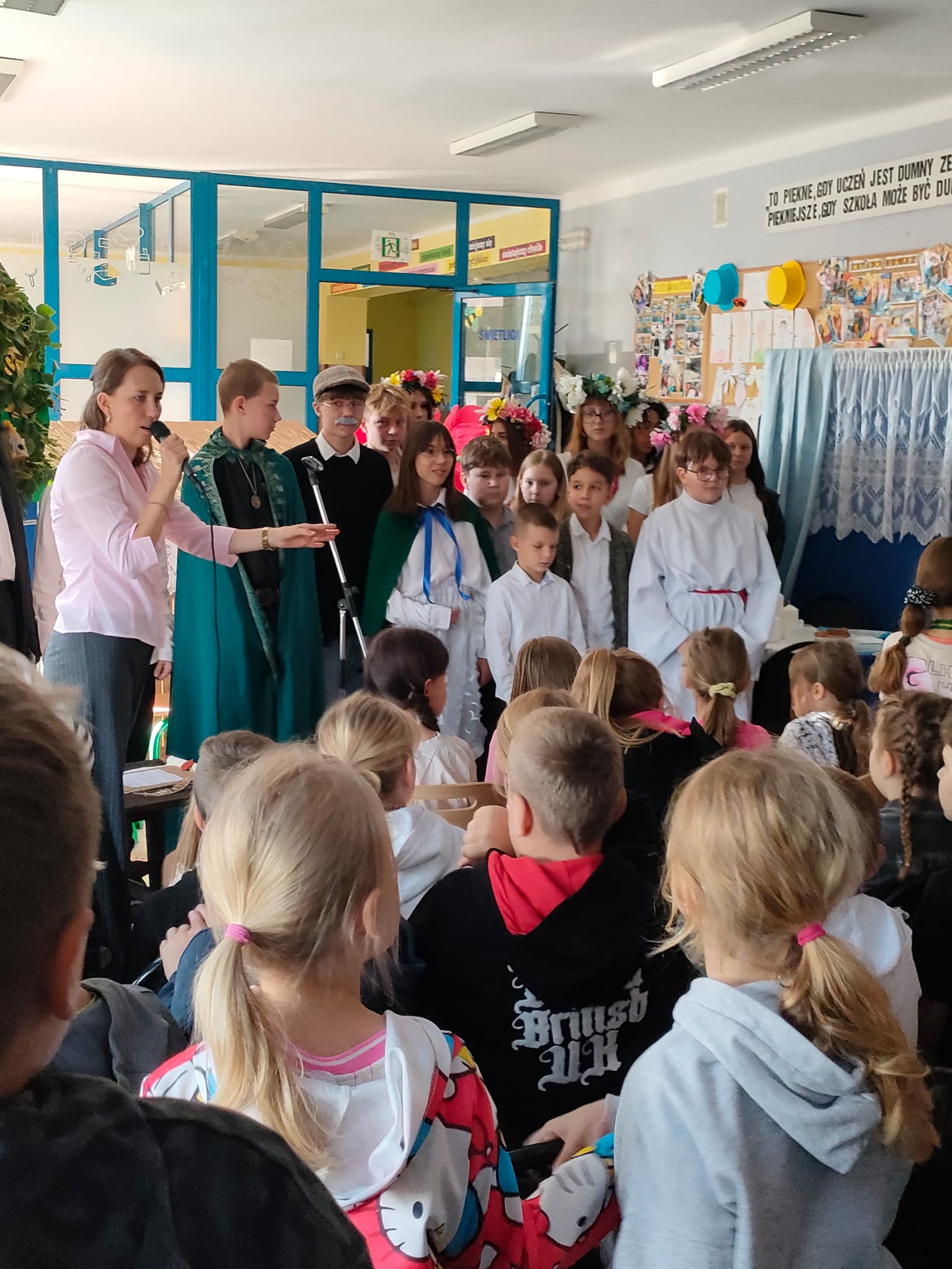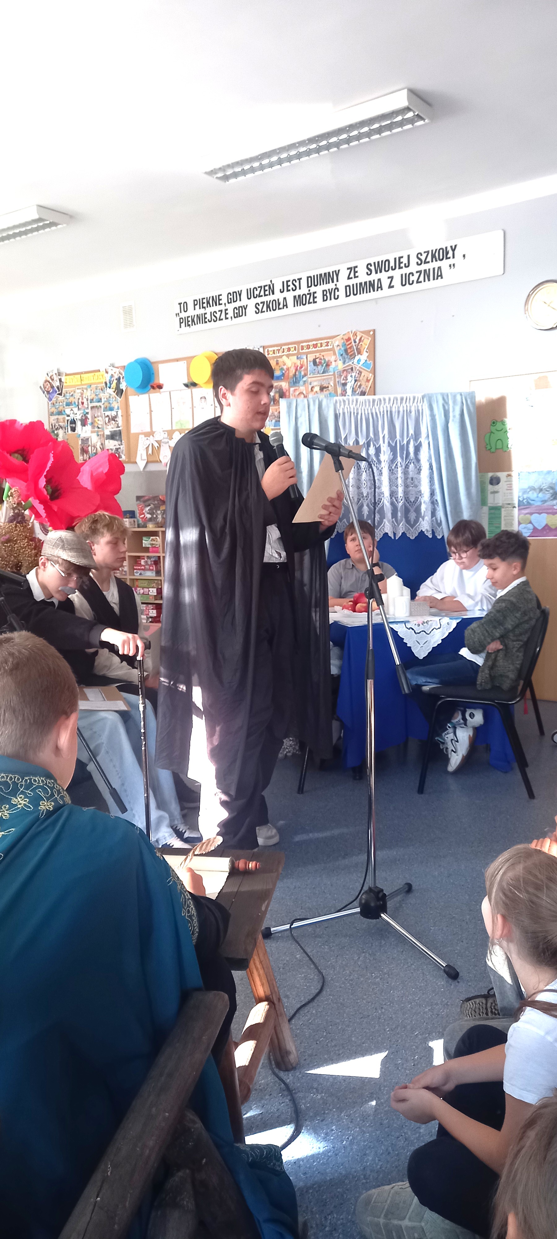 Na końcu wystąpił Mistrz Słowa - Jan Kochanowski (Maciej Szuszkiewicz z kl. 8a), który wygłosił wzniosłą mowę do zebranych.