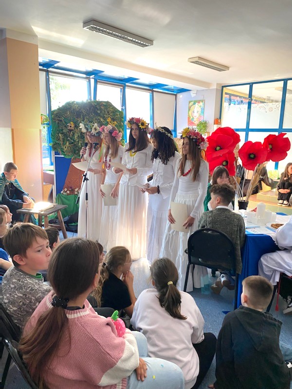 Dopełnieniem występu było odczytanie „Pieśni II” - „Serce roście patrząc na te czasy!” przez Oliwię Andrzejak z kl. 5b