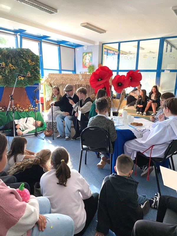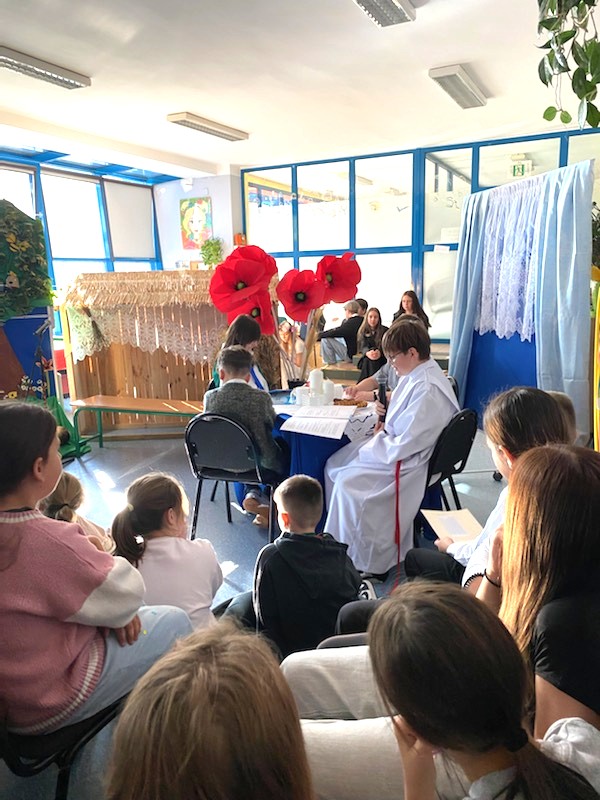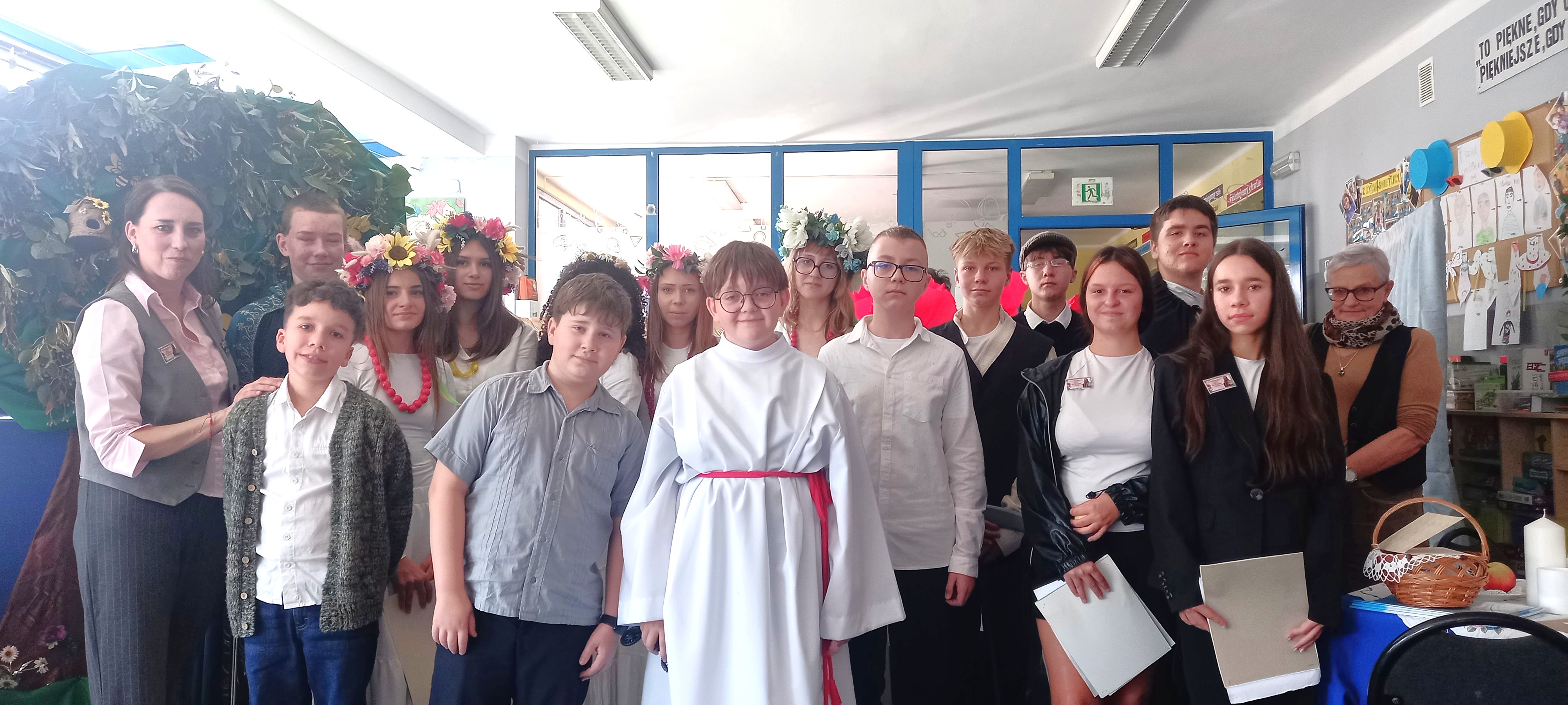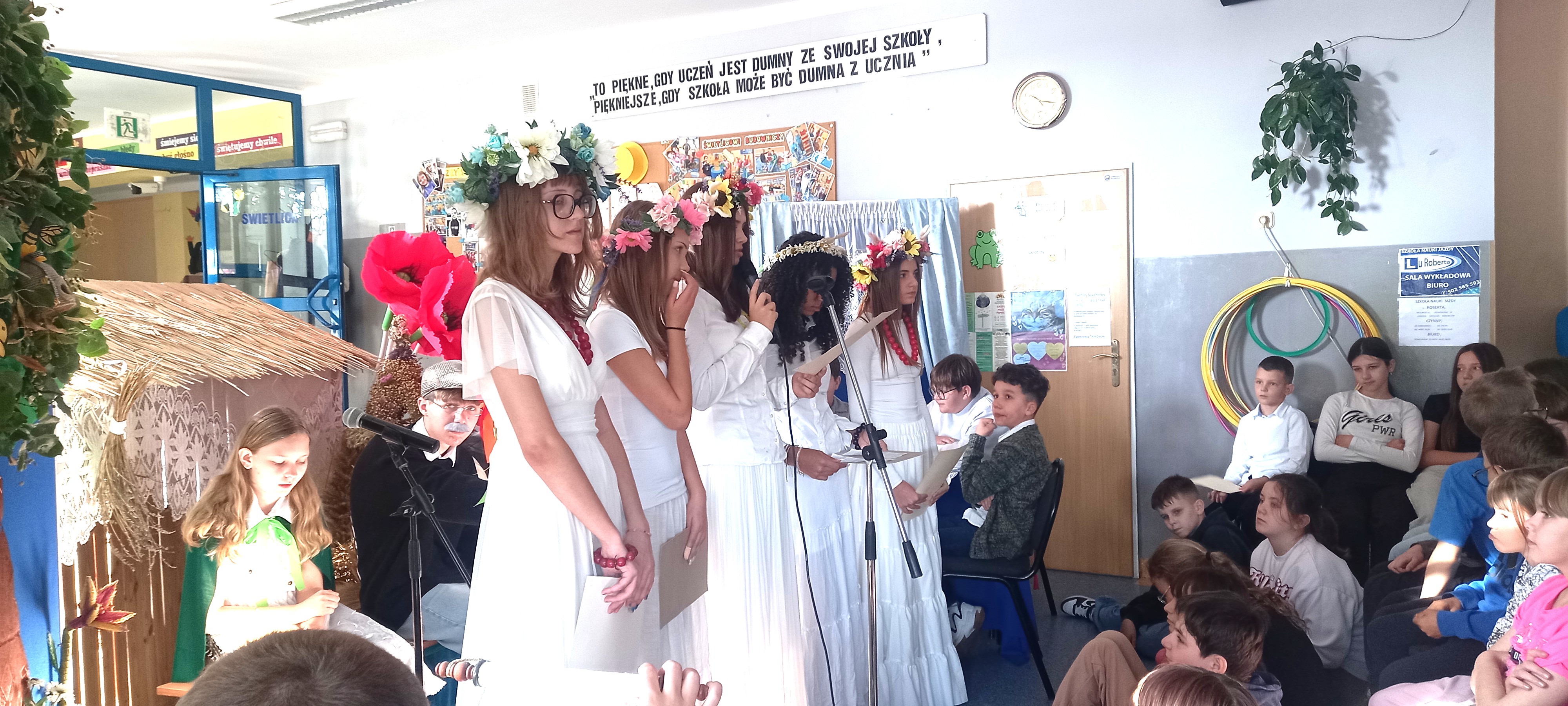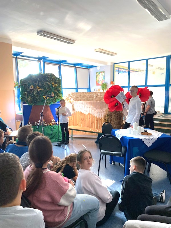 Z tej okazji uczniowie naszej szkoły przygotowali montaż słowno-muzyczny,