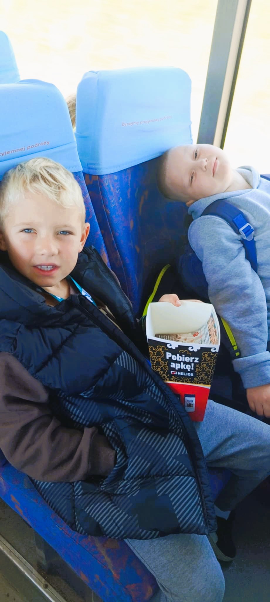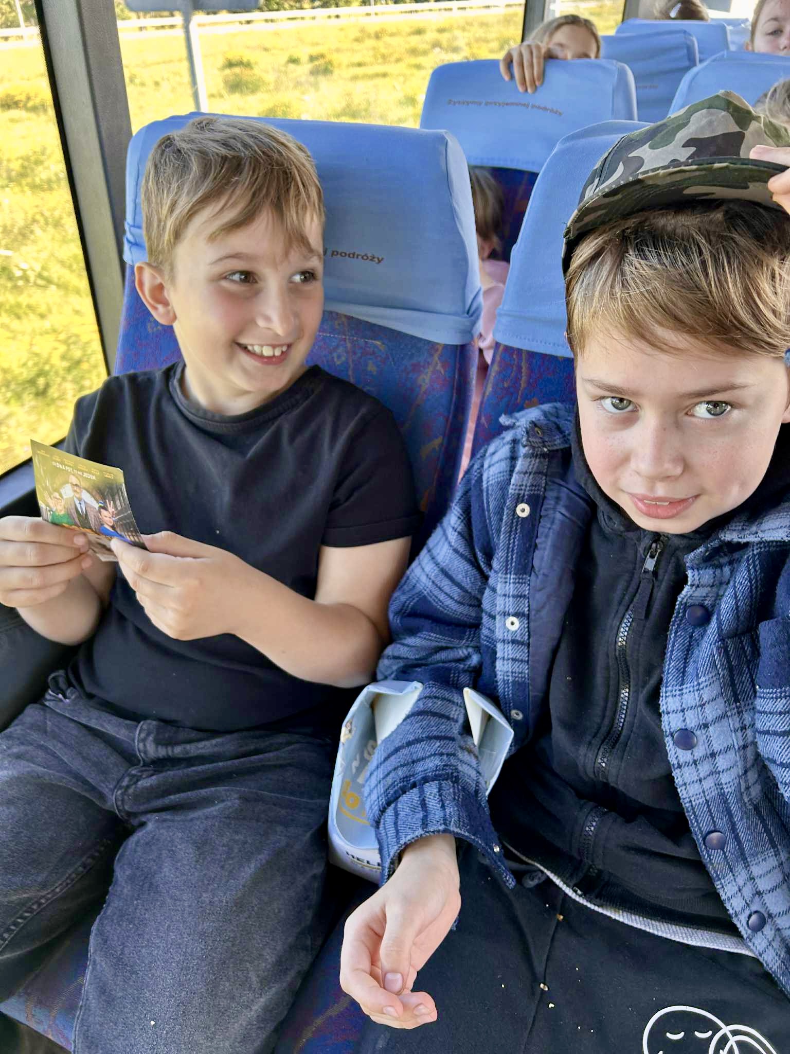 W dniu 25 września 2025 r. uczniowie klas 1c, 2c i 5d wraz z opiekunami – panią Eweliną Dudą, panią Agnieszką Majchrzak oraz panią Joanną Topolską – uczestniczyli w wyjeździe do kina na film „O psie, który jeździł koleją 2”.