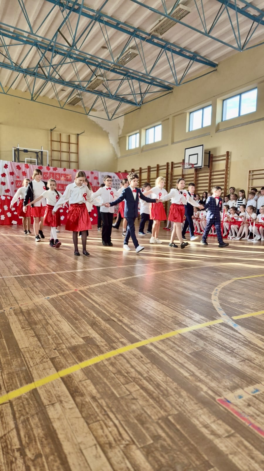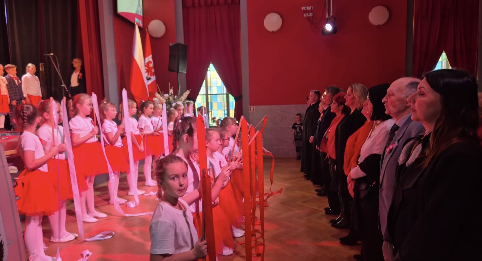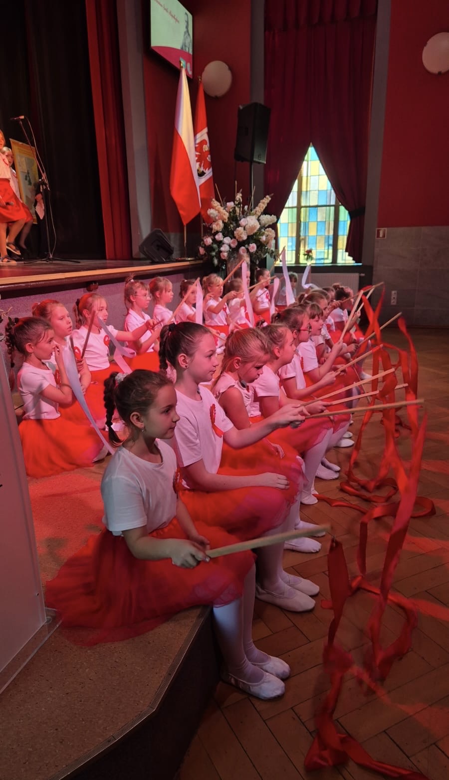 zaprezentowały występ taneczny z szarfami o charakterze patriotycznym.
