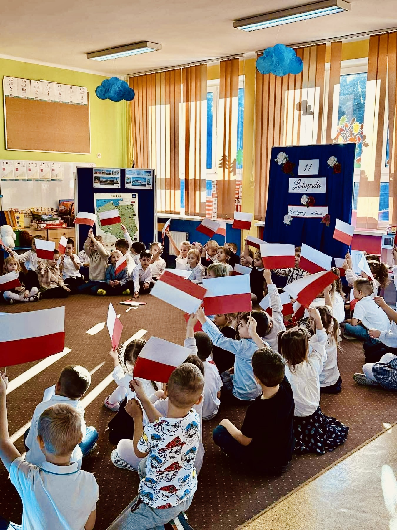 Przedszkolaki z dumą prezentowały biało-czerwone flagi, pokazując,
