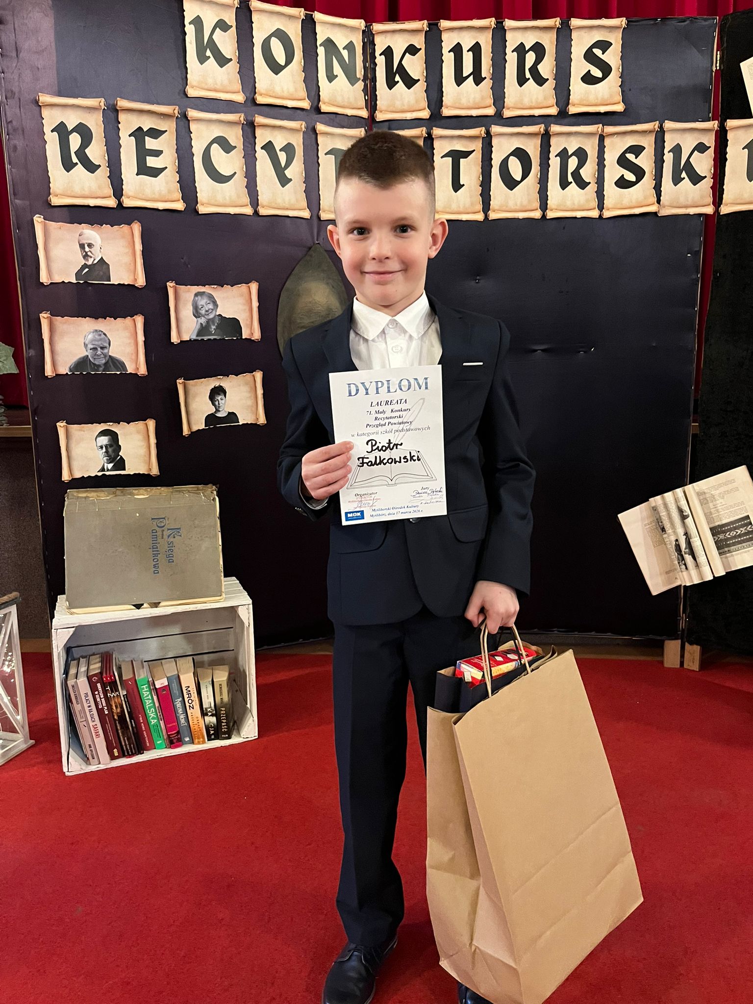 Serdecznie gratulujemy Piotrowi Falkowskiemu z kl. II a oraz Blance Koziewicz z kl. VII a naszej szkoły awansu do etapu wojewódzkiego 71. Małego Konkursu Recytatorskiego, który odbędzie się 8-10 maja 2026 r. w Zamku Książąt Pomorskich w Szczecinie. Cieszymy się, że umiejętnie mierzycie się ze słowem i interpretacją deklamowanych tekstów. Gratulujemy też Marii Wiśniewskiej z kl. II a i Faustynie Wiśniewskiej z kl. VI a, które zostały docenione przez jury i wyróżnione w etapie powiatowym recytatorskich potyczek ze słowem. Brawo.