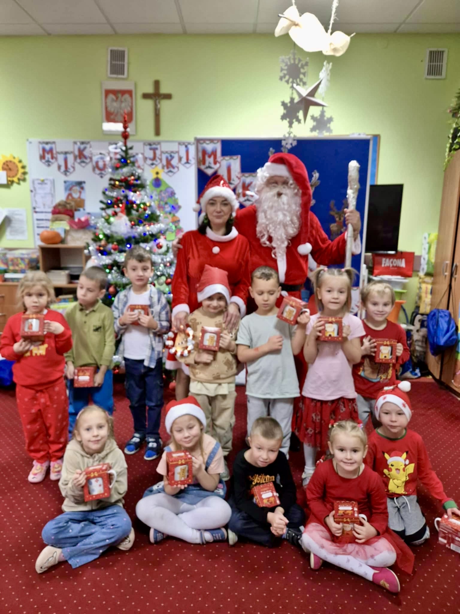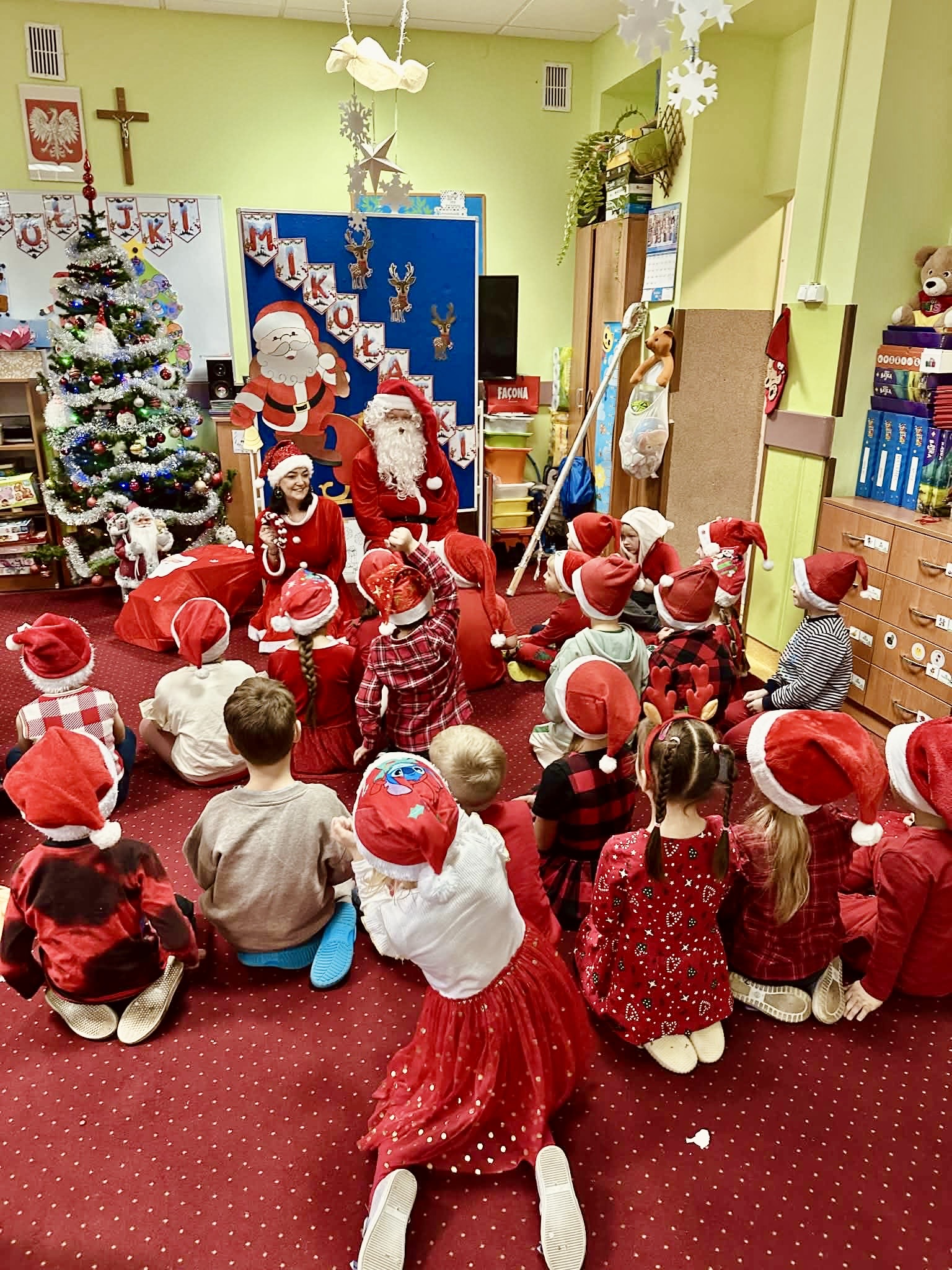 Do naszej zabawy dołączył wyczekiwany gość - Święty Mikołaj wraz ze Śnieżynką - p. Anną Sochą.