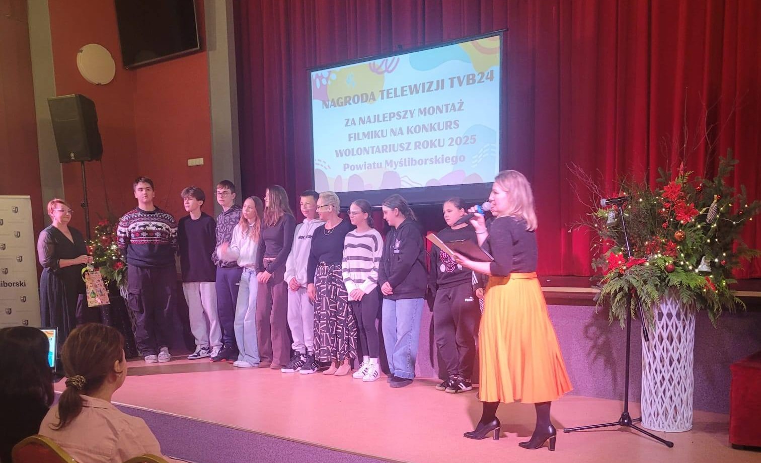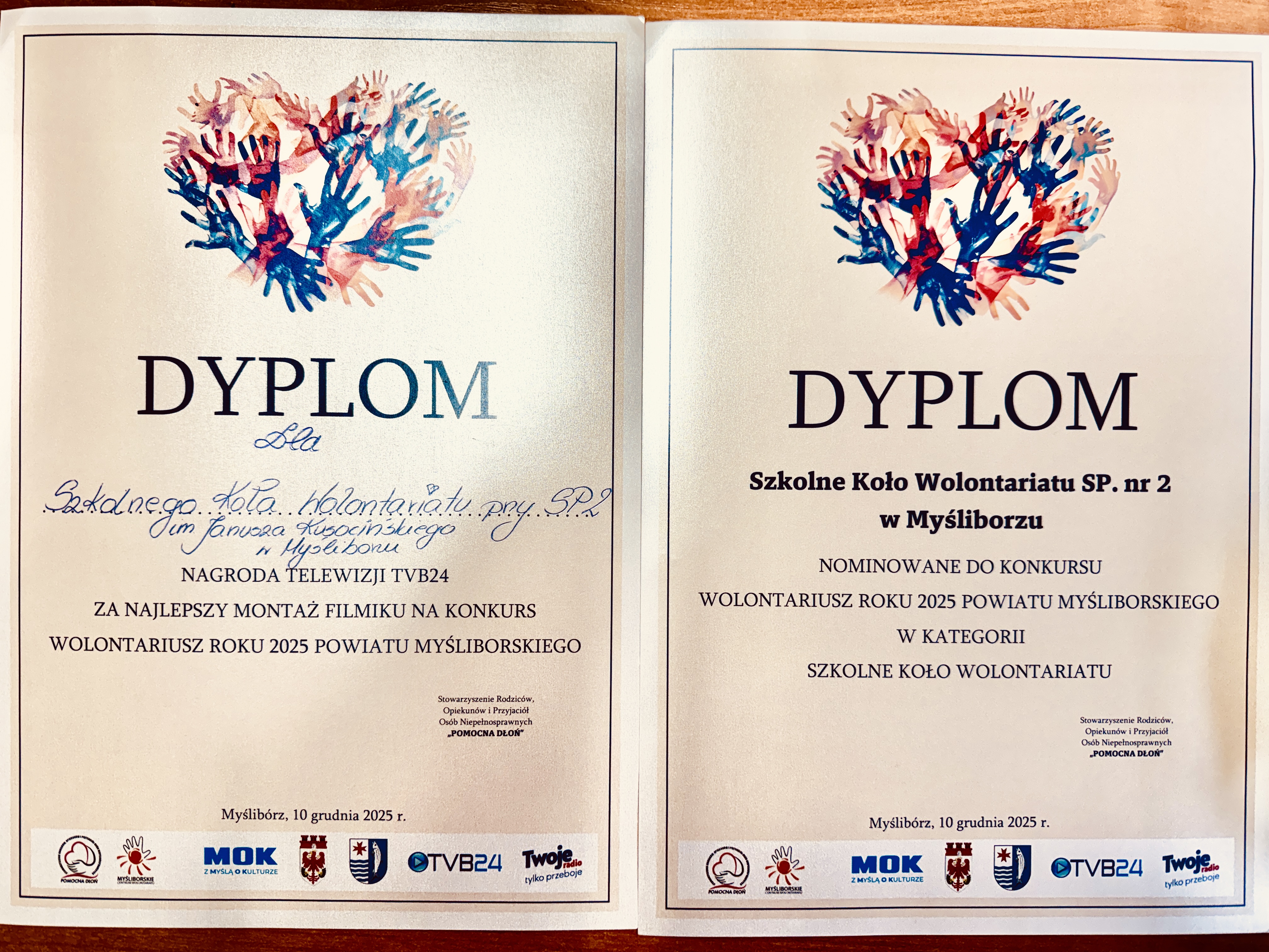 Szkolne Koło Wolontariatu z naszej "Dwójki" otrzymało nagrodę telewizji TVB24 za najlepszy montaż filmiku na konkurs ,,Wolontariusz Roku 2025 Powiatu Myśliborskiego". To wyróżnienie jest dużym sukcesem i potwierdzeniem wysokiego poziomu pracy naszego szkolnego koła oraz kreatywności w przygotowaniu materiału promocyjnego.