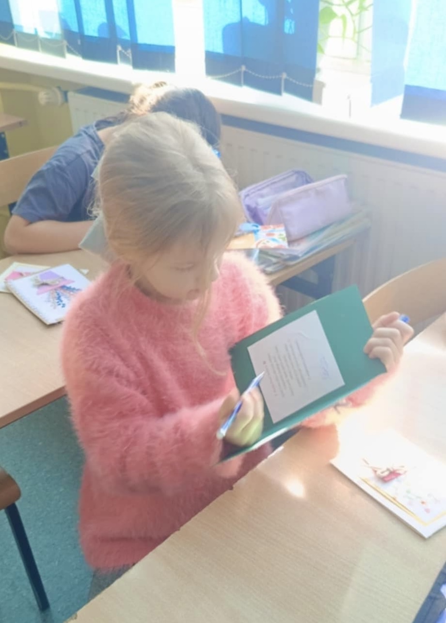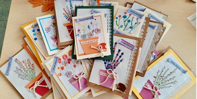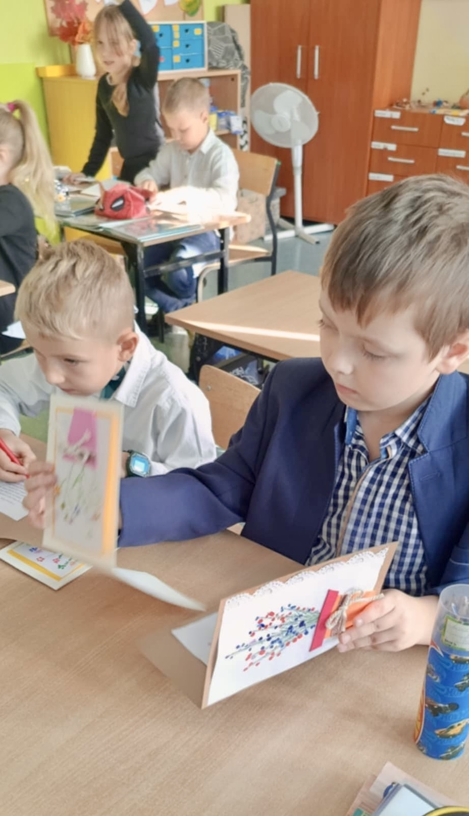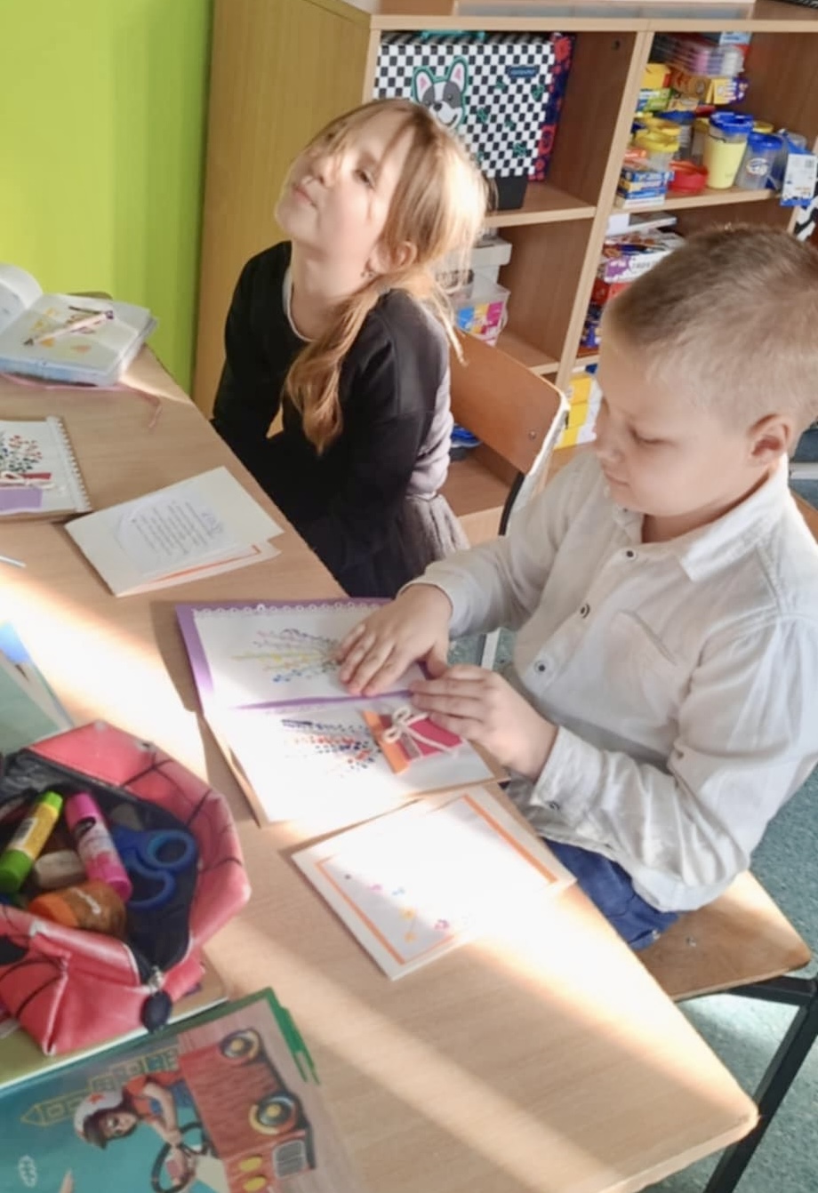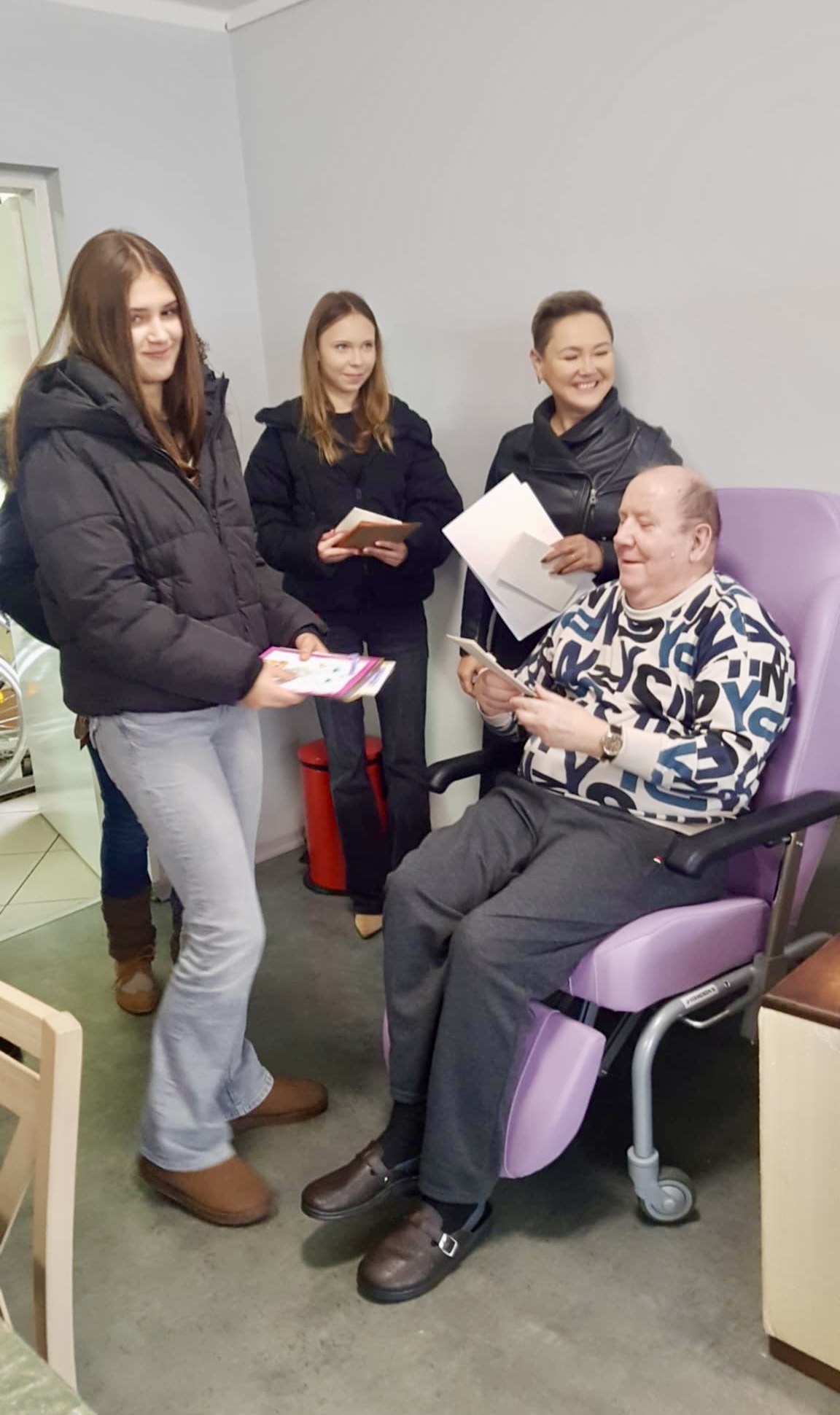 Pomocy Społecznej, aby przekazać jego podopiecznym kartki okolicznościowe przygotowane przez