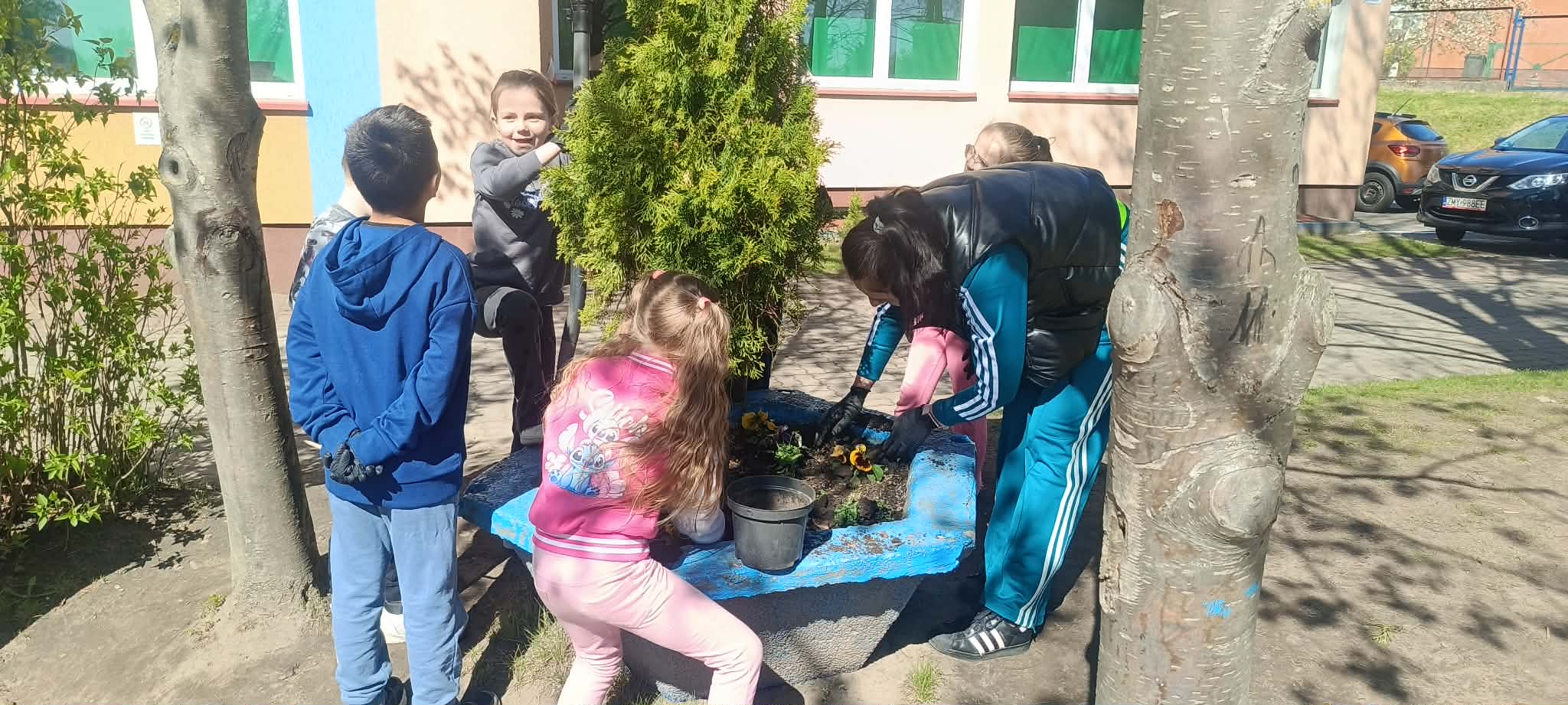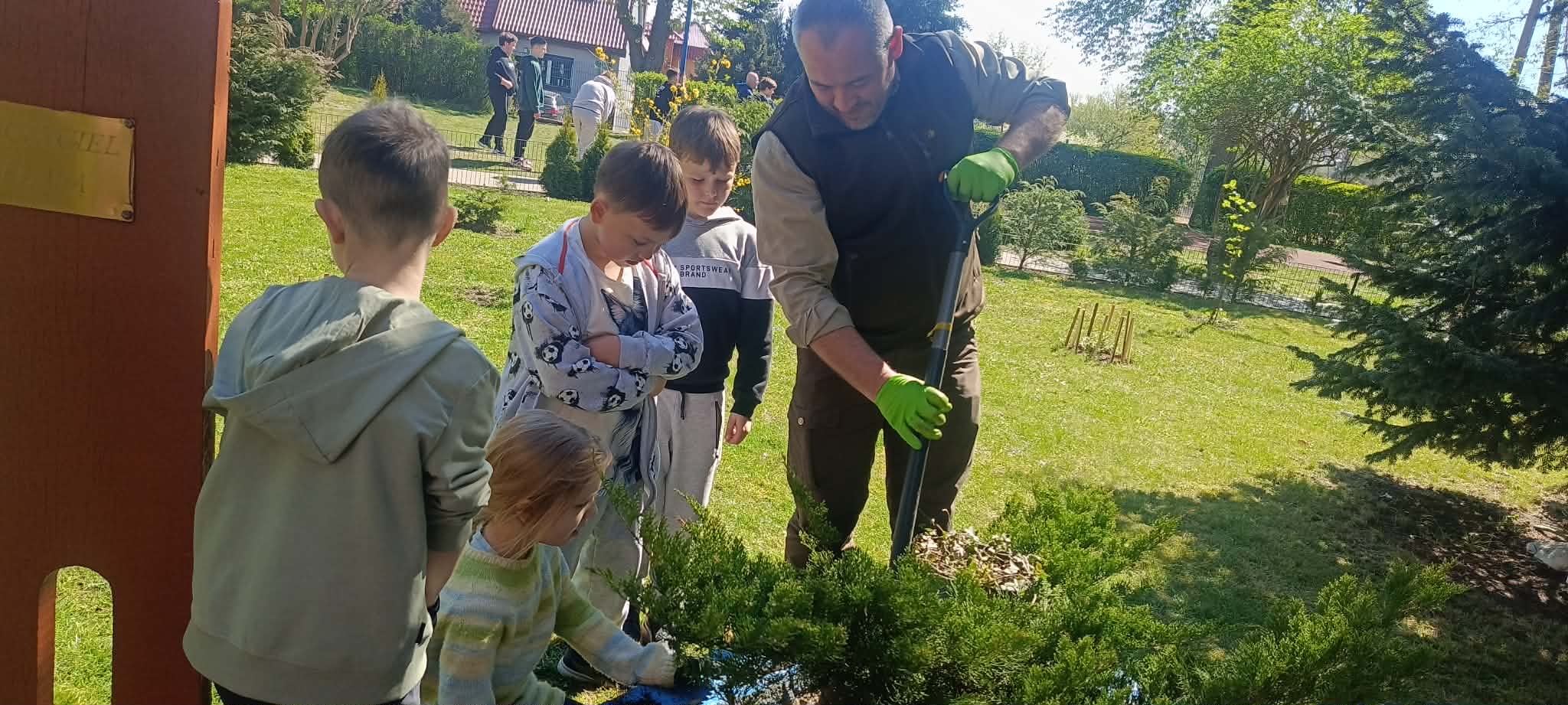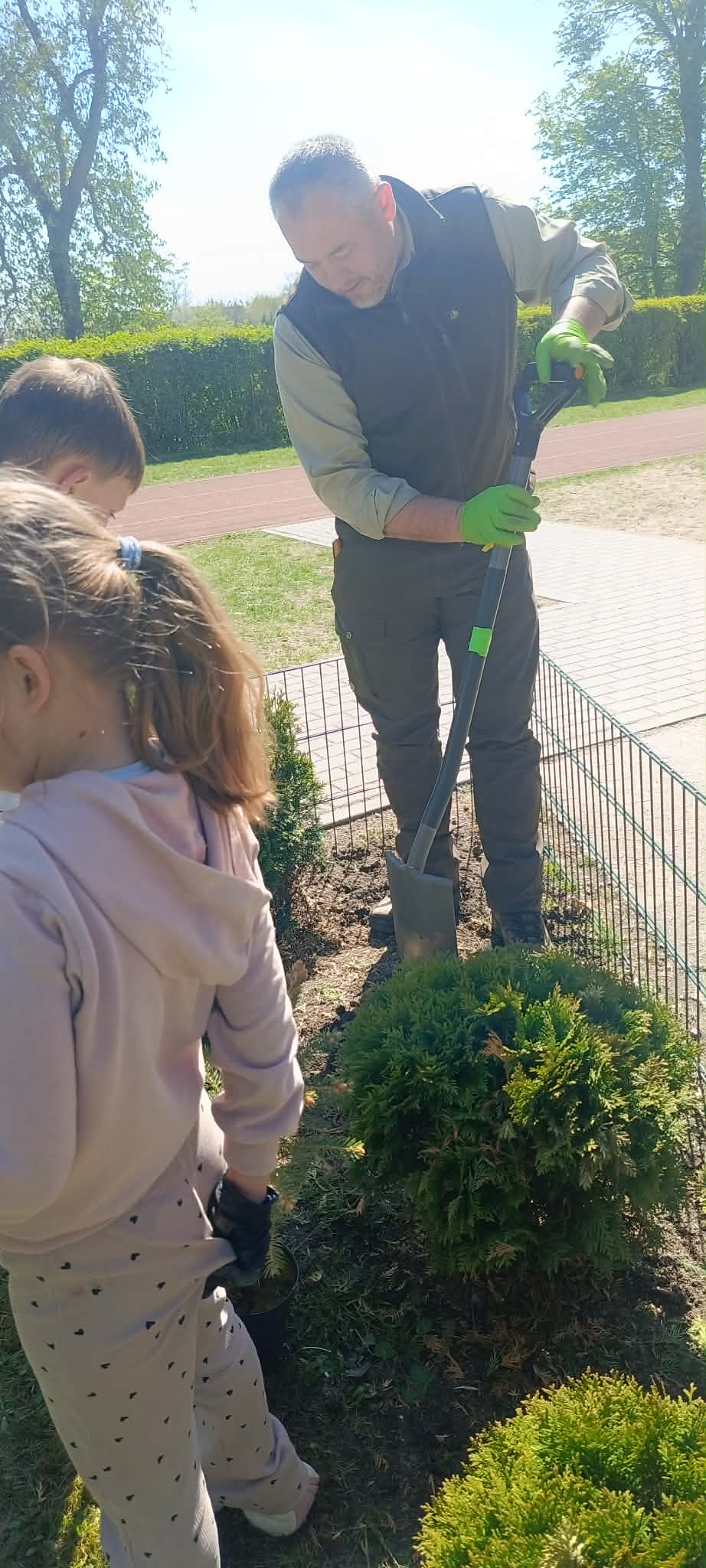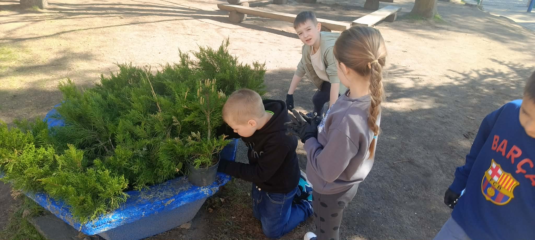 Zorganizowano także akcję sadzenia roślin wokół szkoły przy współpracy z Nadleśnictwem Myślibórz, w której udział brali uczniowie