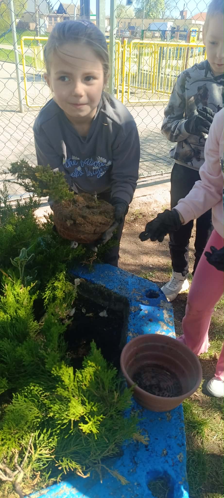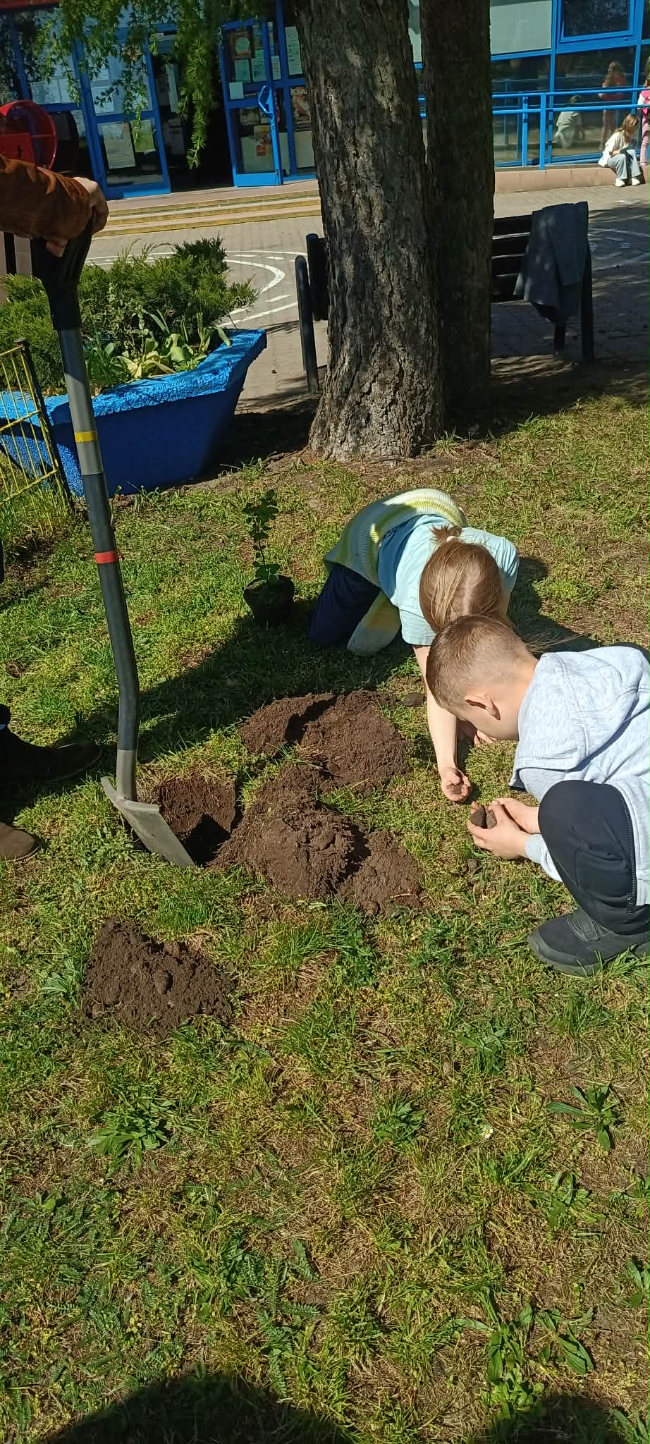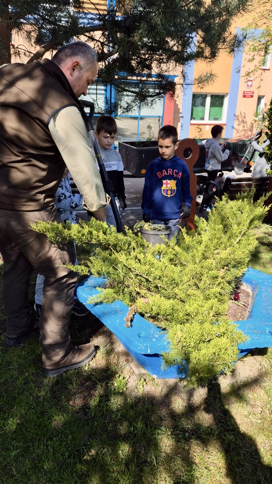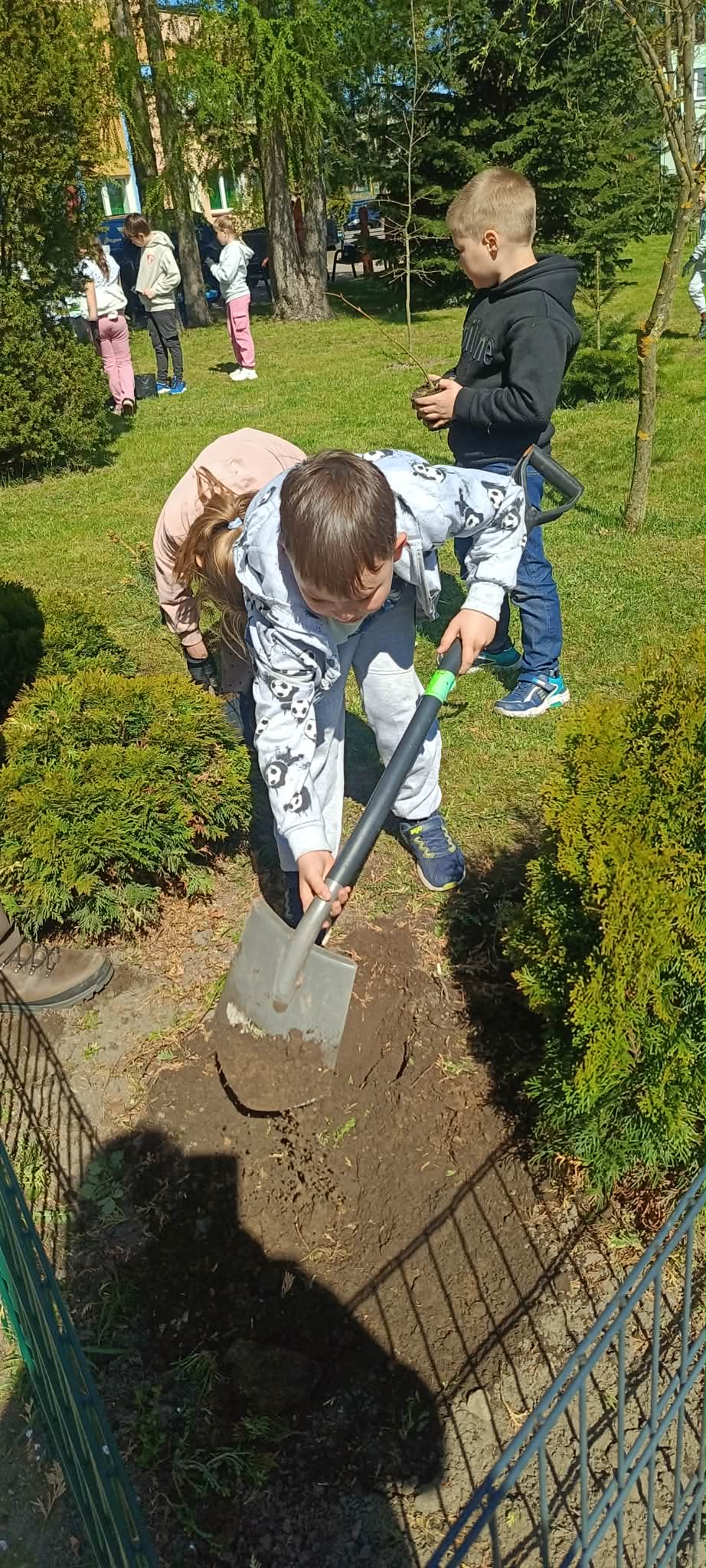 Zorganizowano także akcję sadzenia roślin wokół szkoły przy współpracy z Nadleśnictwem Myślibórz, w której udział brali uczniowie