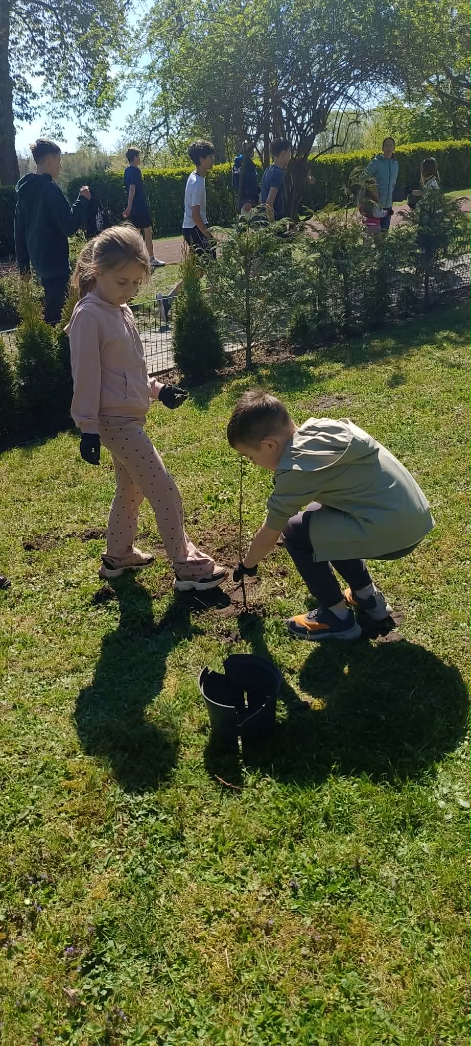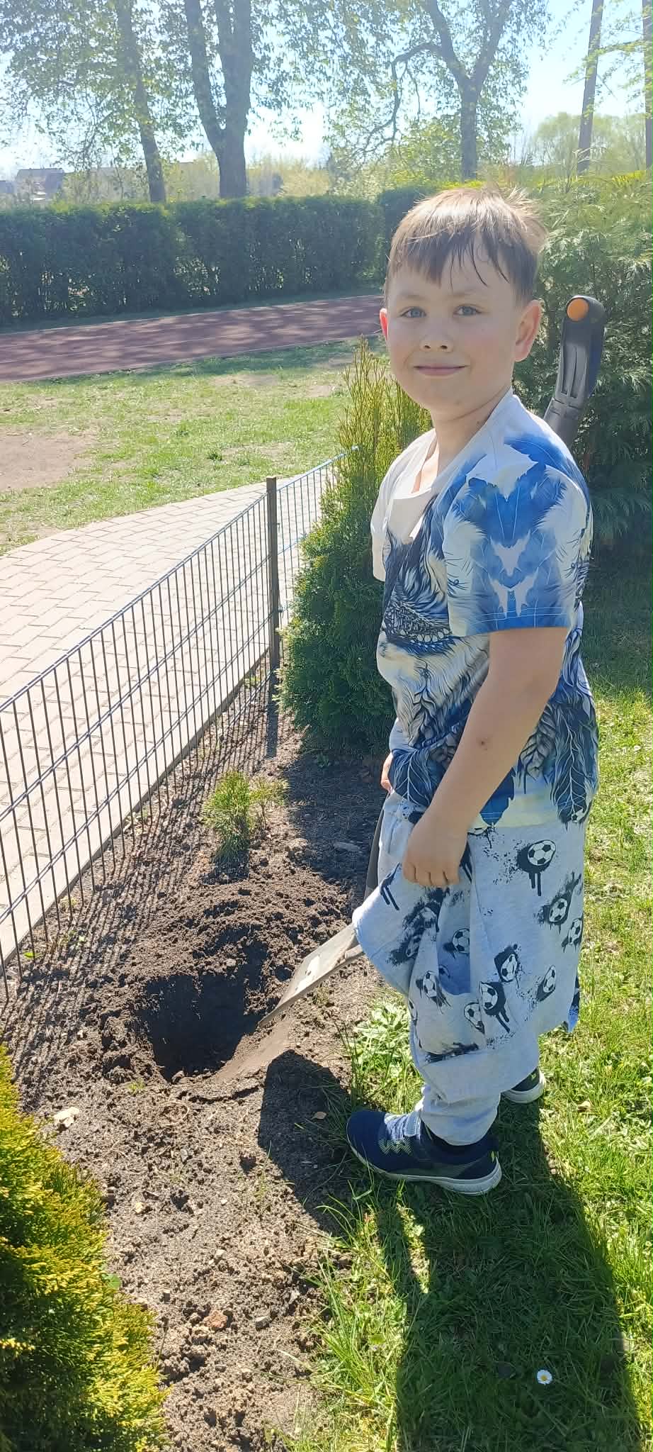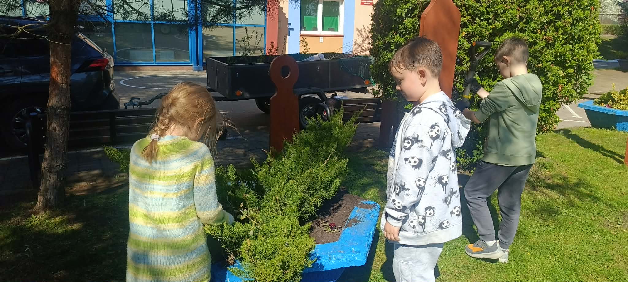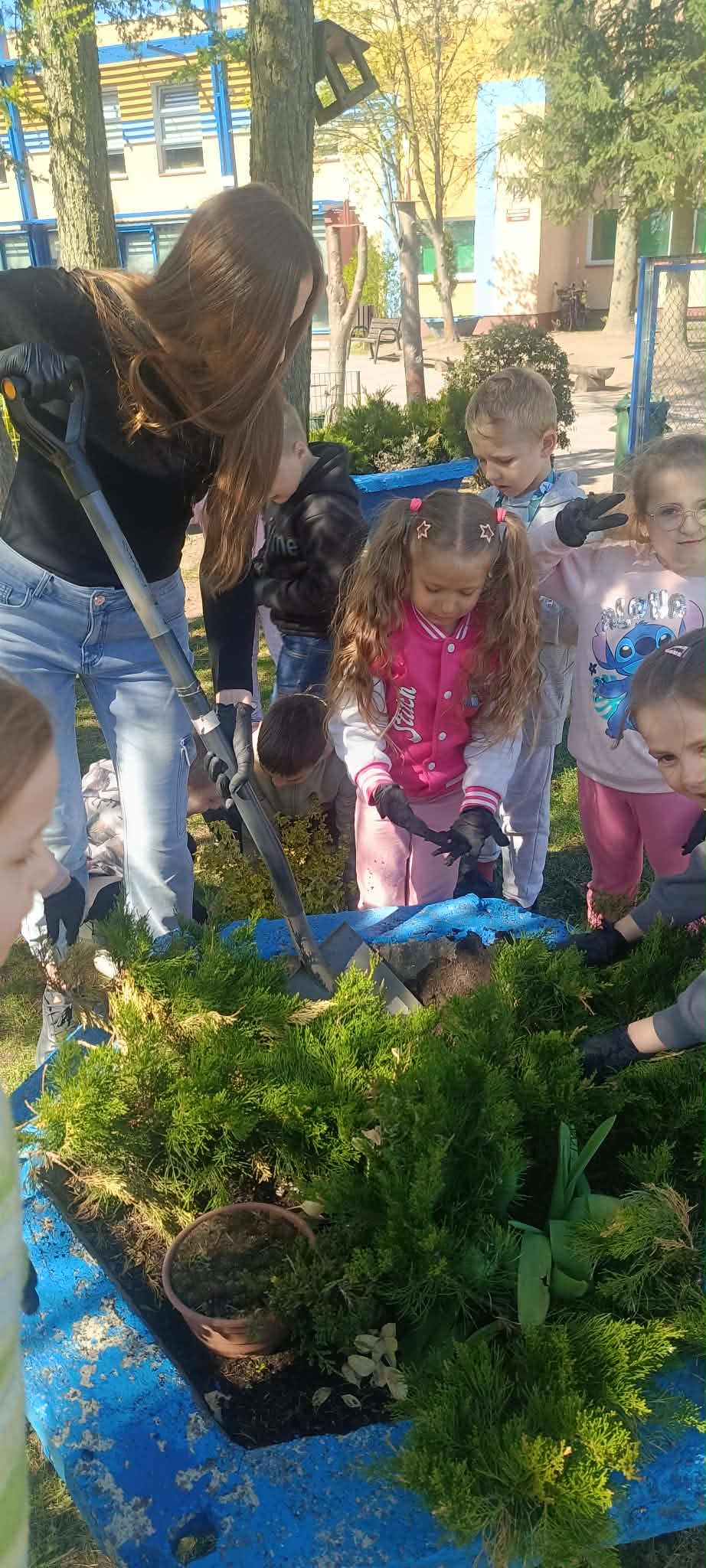 Zorganizowano także akcję sadzenia roślin wokół szkoły przy współpracy z Nadleśnictwem Myślibórz, w której udział brali uczniowie