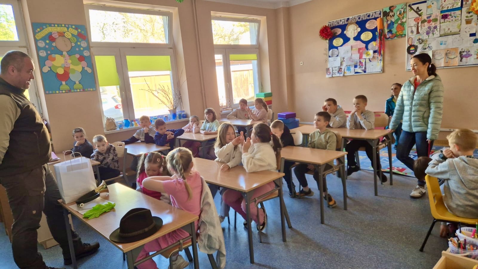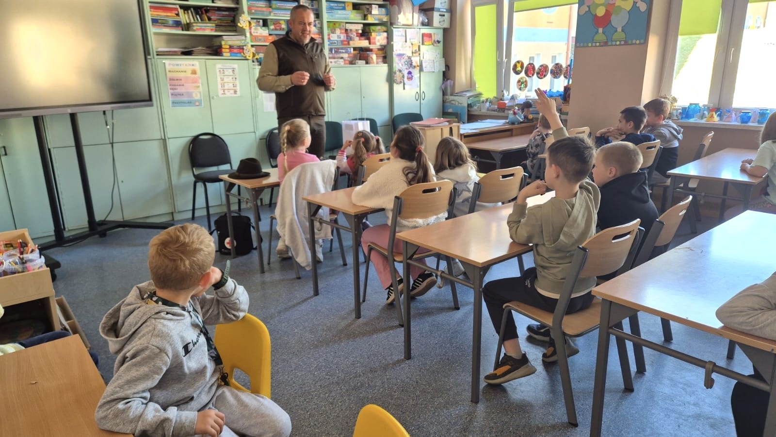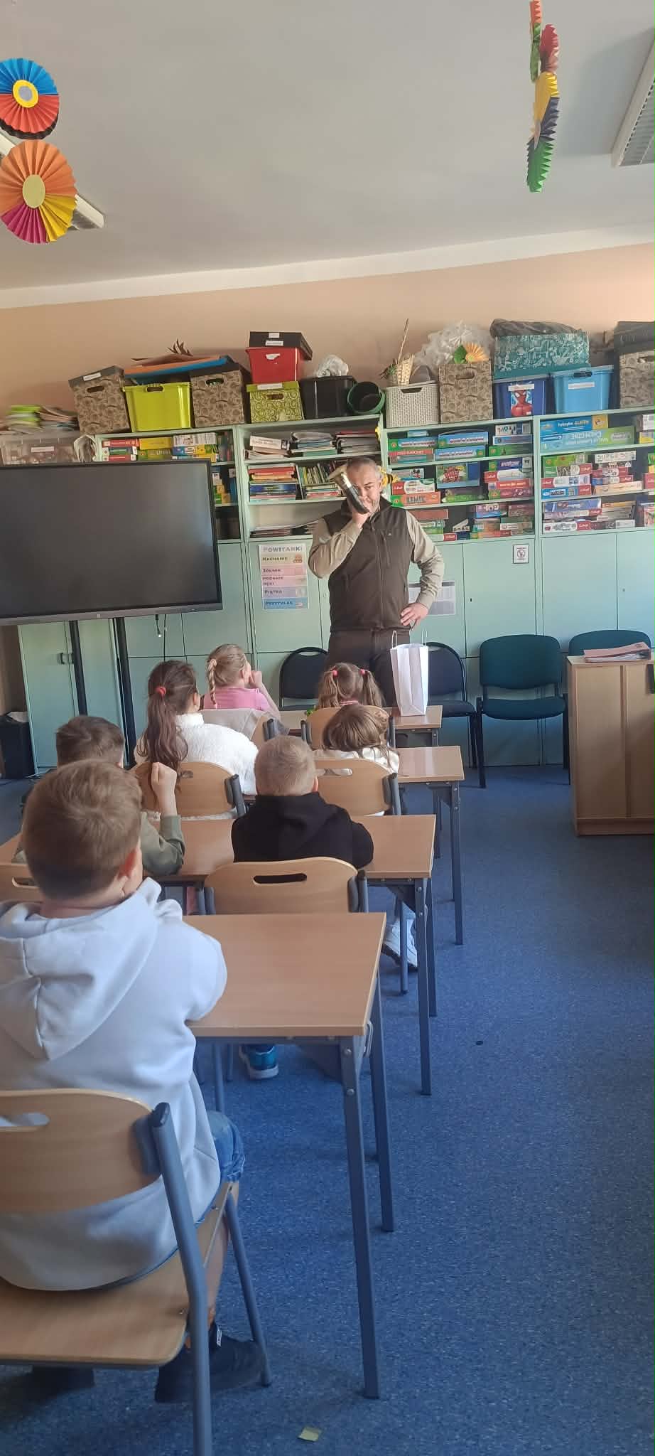 W świetlicy Pan leśnik Grzegorz Biel opowiedział uczniom o swojej codziennej pracy oraz zaprezentował