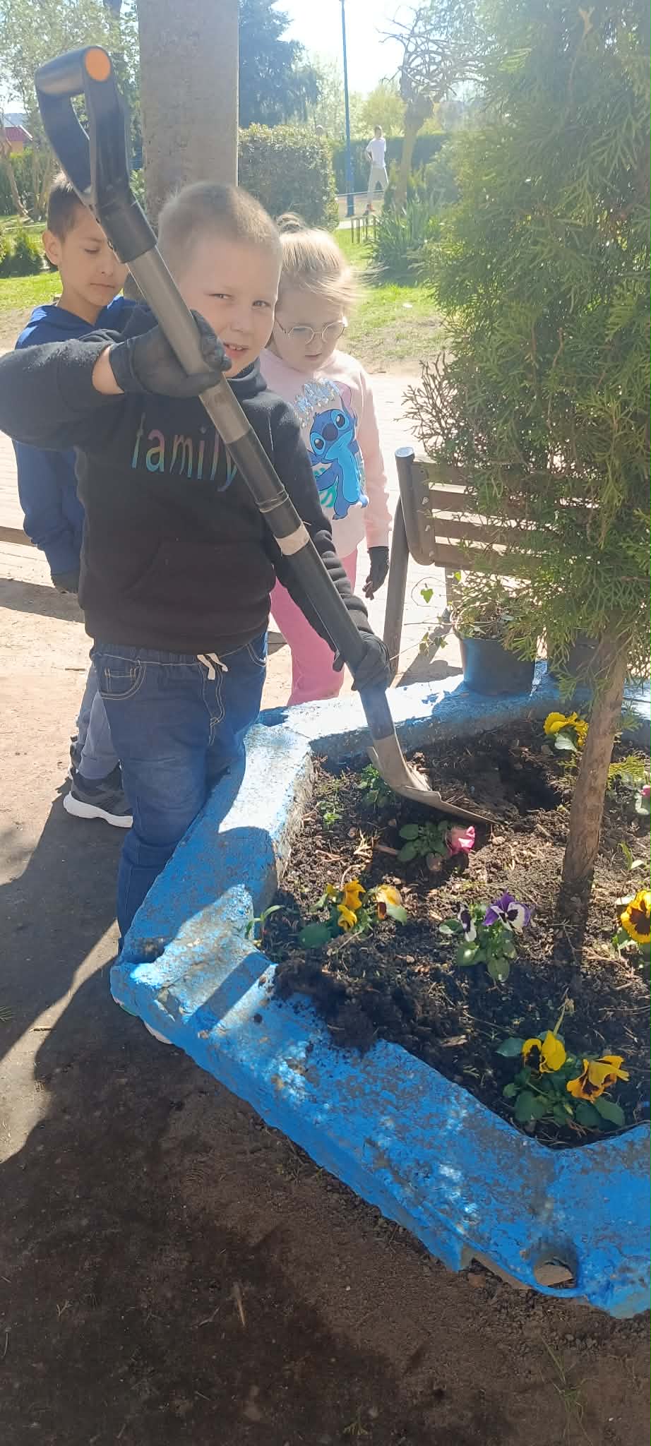 z kl. 1c oraz z kl. 5d razem z opiekunami: p. Eweliną Dudą, p. Joanną Topolską a także nauczycielami świetlicy i pracownikami niepedagogicznymi. To pozwoliło nam aktywnie włączyć się w ochronę środowiska.