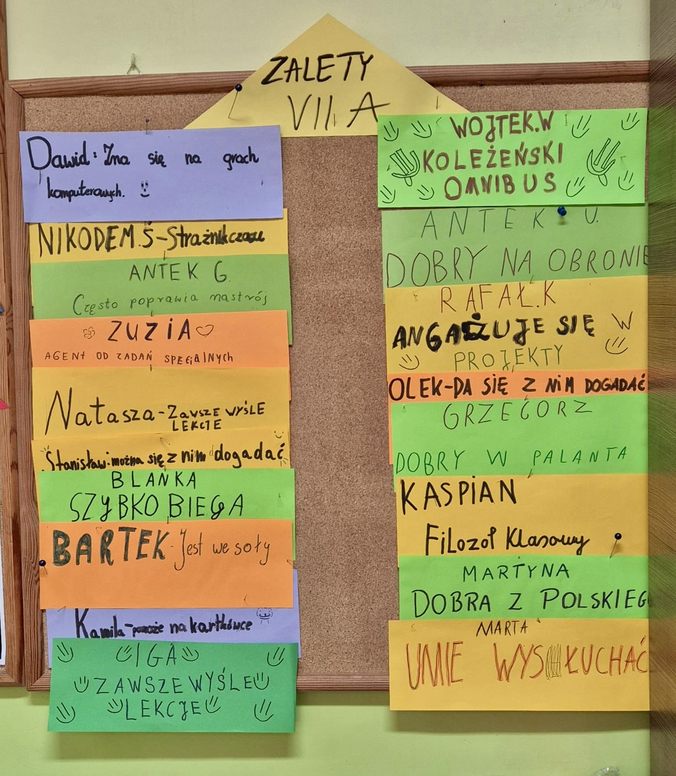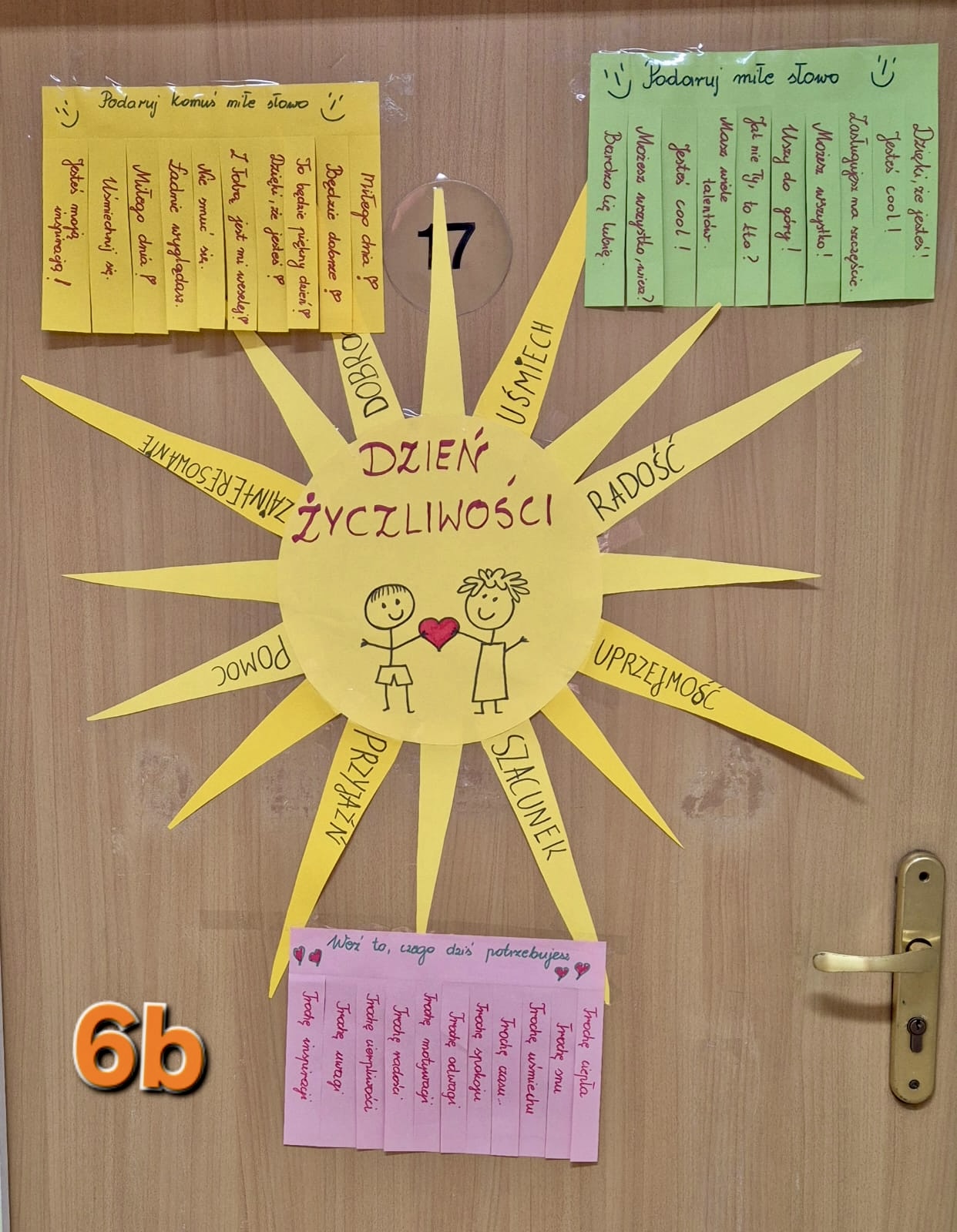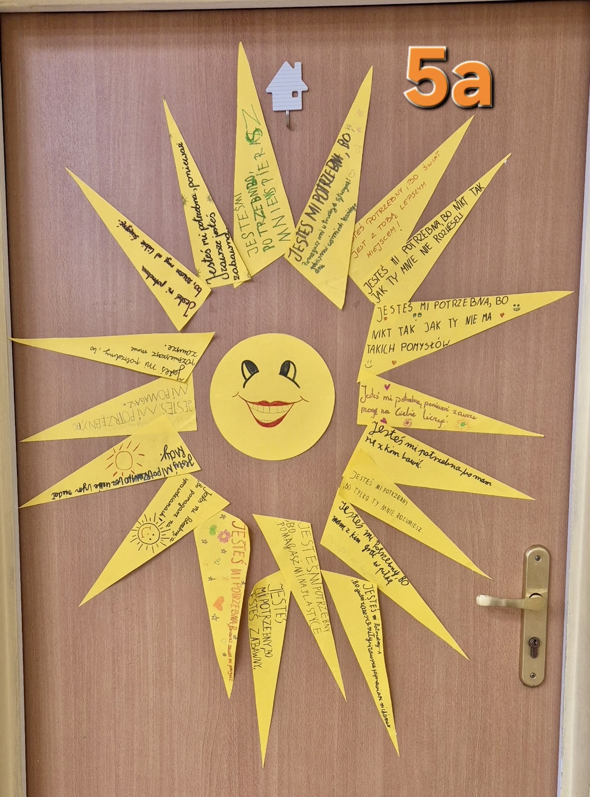 Tego dnia korytarze i klasy były ozdobione pozytywnymi fiszkami: