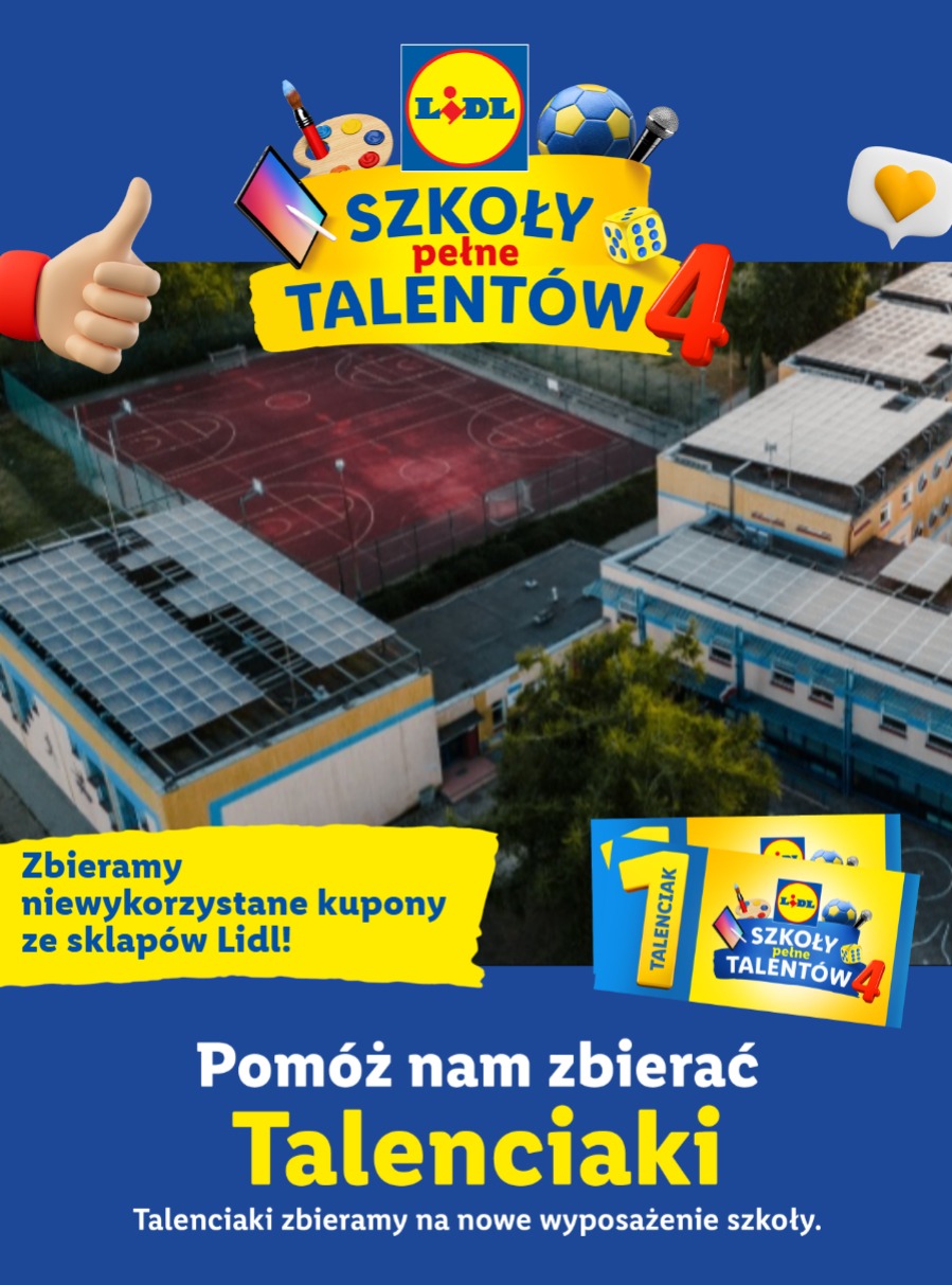 Kupony otrzymane podczas zakupów w sklapach Lidl można przynosić do szkoły i wrzucić do specjalnych "skarbonek" przy wejściu do szkoły, w świetlicy, przedszkolu i sekretariacie LUB samodzielnie zeskanować i dodać bezpośrednio na konto naszej szkoły w akcji: https://szkoly.lidl.pl/Talenciaki/daneSzkoly/87040009810