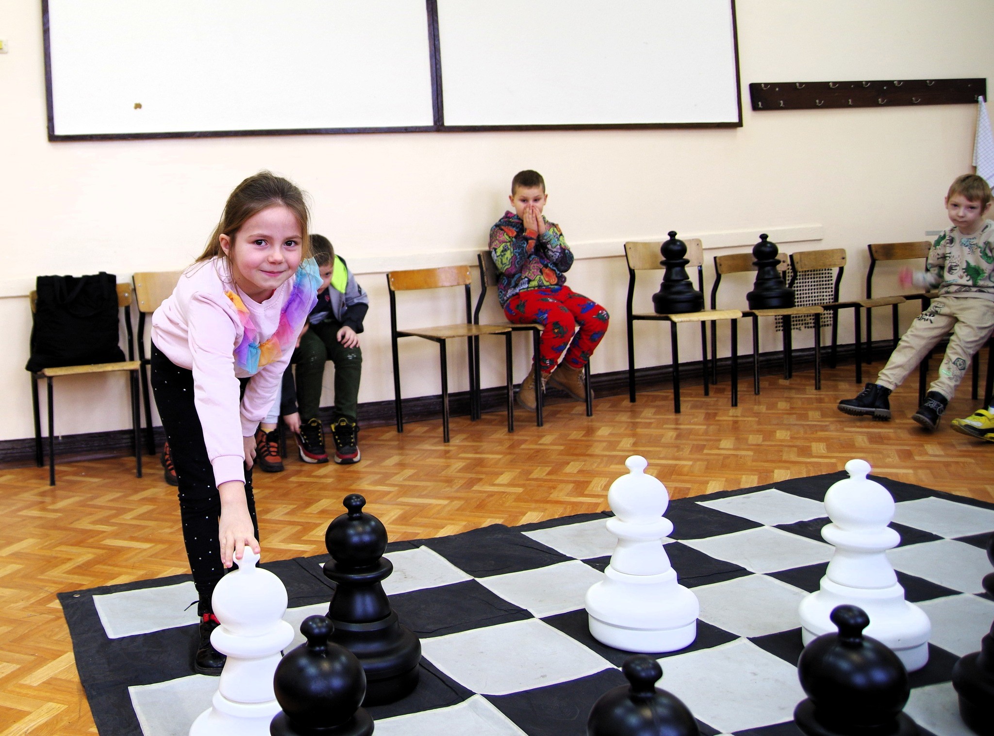 Potem sami zasiedliśmy do szachownic, żeby rozegrać swoje pierwsze partie.