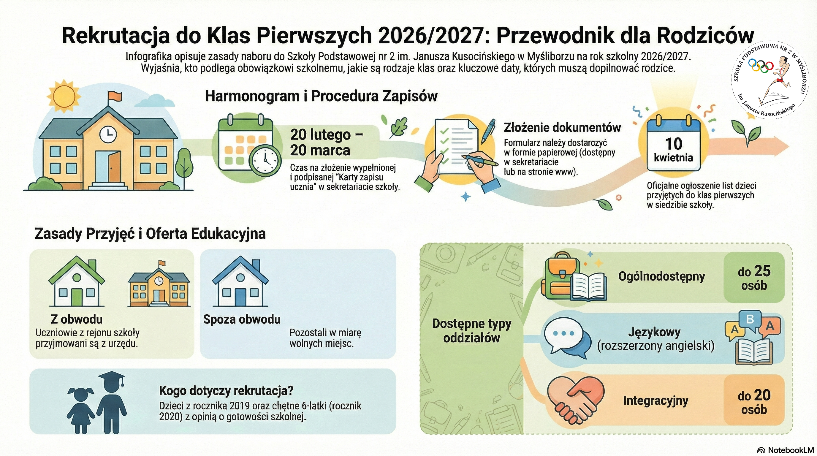Dane ucznia rodzic wpisuje na podstawie dokumentów państwowych - np. metryki urodzenia, dowodu osobistego lub paszportu dziecka. Karta zapisu powinna być podpisana przez oboje rodziców (lub wszystkich opiekunów prawnych), nawet w sytuacji gdy któreś z rodziców mieszka osobno, jeśli nie ma odebranych praw rodzicielskich decyzją sądu.